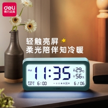 得力(deli)多功能电子闹钟 背光电子钟 温湿度计功能 元旦圣诞节礼物 绿色8826