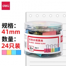 得力(deli)24只41mm彩色长尾夹票夹 2#金属燕尾夹票据夹子 办公用品 8552