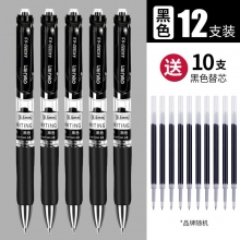 得力(deli) 按动中性笔签字笔黑色碳素水笔学生办公用品 黑色0.5mm 12支33388