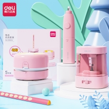 得力(deli) 学生电动文具套装/礼盒/新年礼物(桌面吸尘器+电动卷笔刀+洞洞铅笔+电动橡皮擦) 大礼包粉33303