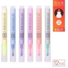 得力(deli)荧光笔记号笔粗划重点套装彩色笔标记笔粗头笔糖果色学生用荧光笔6色大容量 混色-各色2支/共12支
