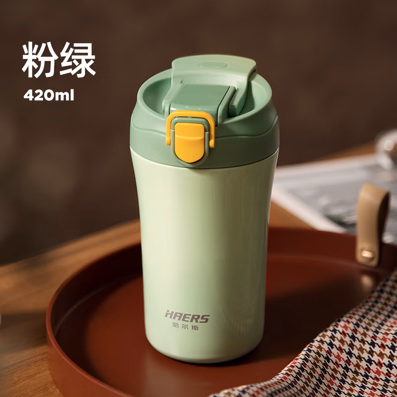 哈尔斯(HAERS)保温杯女高颜值咖啡杯双饮口时尚办公杯车载大容量随行水杯420ml HE-420-21
