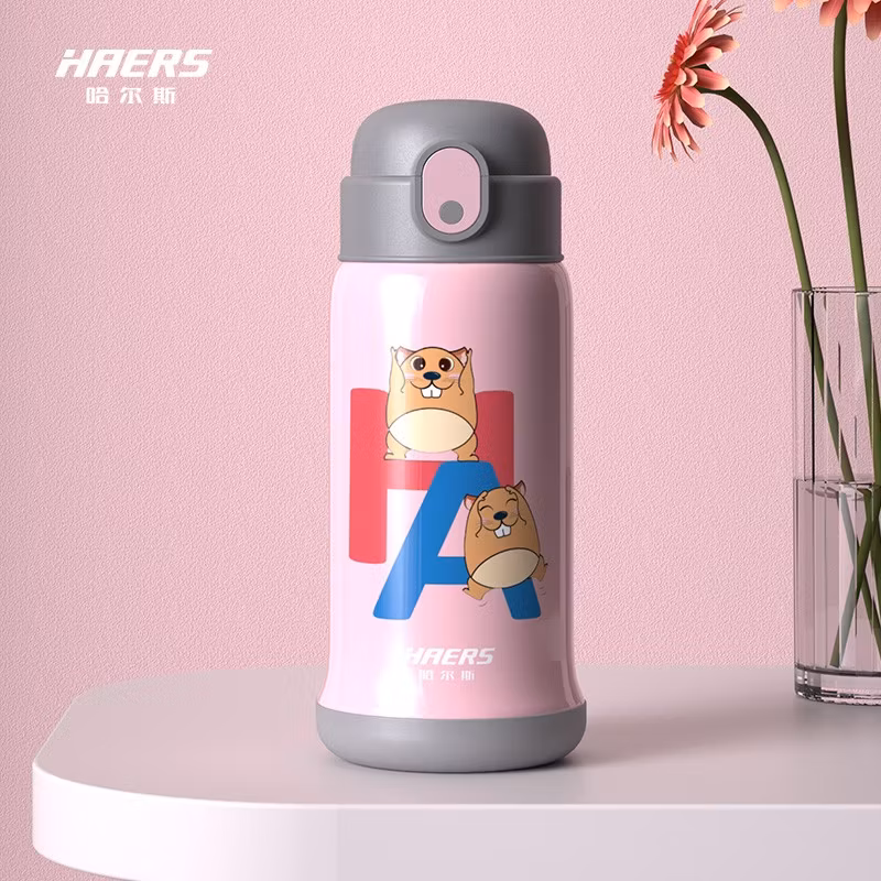 哈尔斯哈趣儿童壶 (一壶双盖)/316不锈钢儿童保温杯带吸管男女两用茶杯600ml大容量小学生防摔宝宝幼儿园水杯600ml LX-600-40