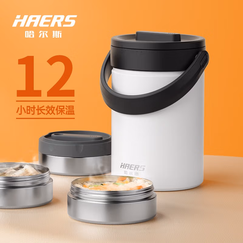 哈尔斯倍乐食光保温提锅/保温饭盒多层2.3升大容量提锅304不锈钢长效保温桶上班族学生带饭汤盒赠餐具 月光白2300ml【四层饭盒 内带餐具】 LR-2300-17