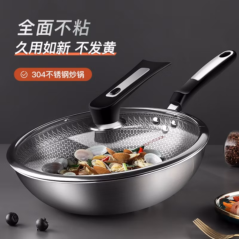 美厨(maxcook)炒锅 304不锈钢炒菜锅 不粘炒锅平底炒锅 可用不锈钢锅铲 燃气煤气灶电磁炉通用32cm MCC7881