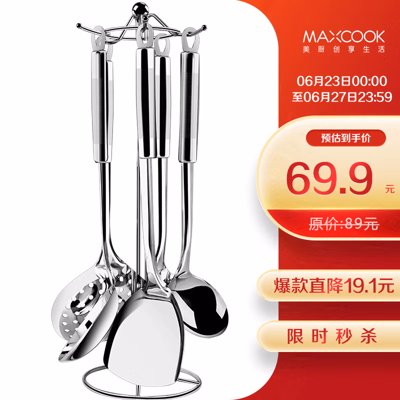 美厨(maxcook)304不锈钢铲勺套装 锅铲炒铲汤勺漏勺火锅勺六件套MCCU714