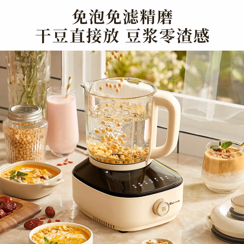 小熊(Bear)破壁机家用低音降噪预约加热豆浆机 多功能早餐机 料理机 榨汁机 辅食机 PBJ-B06K8 1L