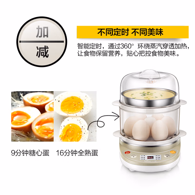 小熊(Bear)煮蛋器 蒸蛋器 家用早餐煮蛋迷你机自动断电微电脑预约定时 微电脑智控 【双层可煮14颗蛋+不锈钢蒸碗】ZDQ-C14A1