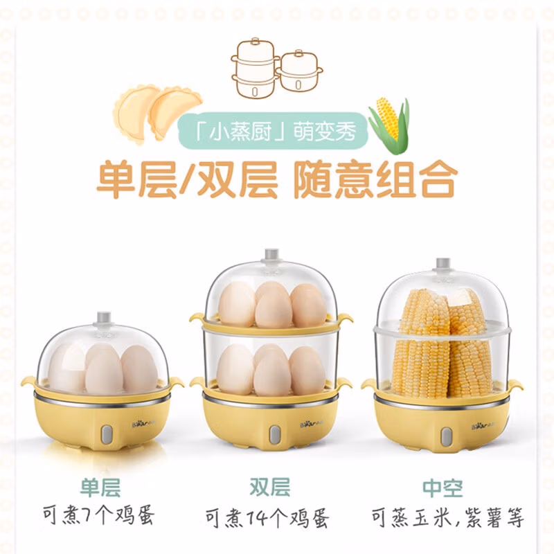小熊(Bear)煮蛋器家用迷你蒸蛋器早餐鸡蛋羹机多功能神器小型蒸鸡蛋器蒸蛋机炖蛋器防干烧自动断电 【双层煮14个蛋 】配不锈钢蒸碗ZDQ-B14W5