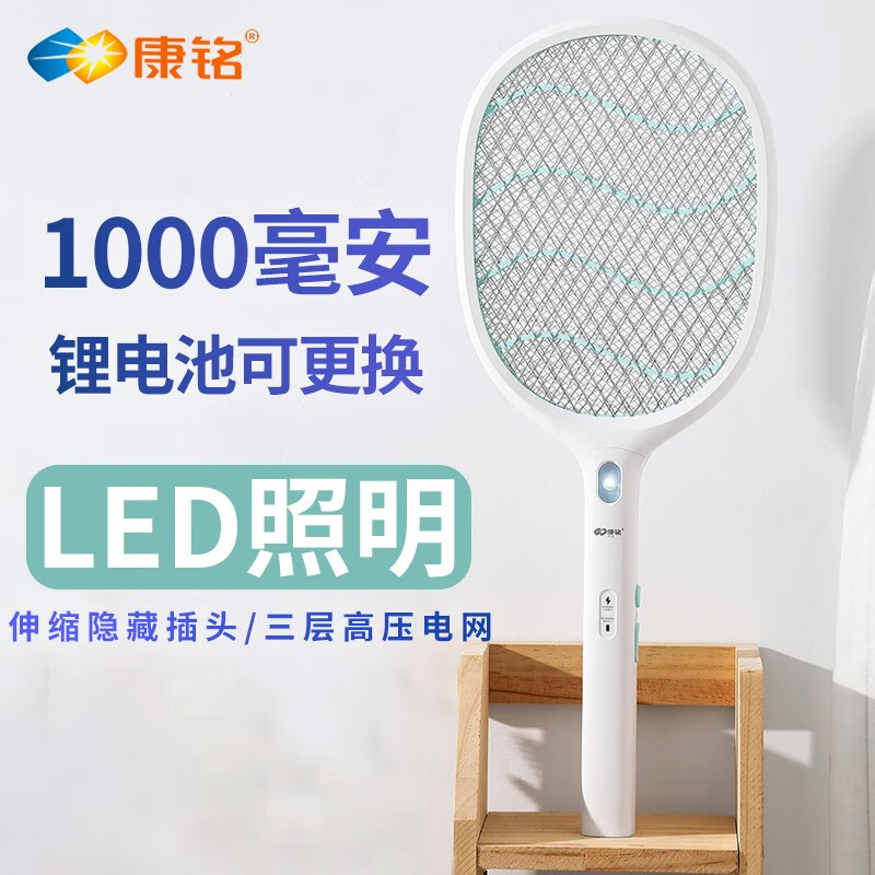 康铭 电蚊拍 充电式家用灭蚊拍驱蚊器苍蝇拍 大网面 LED照明