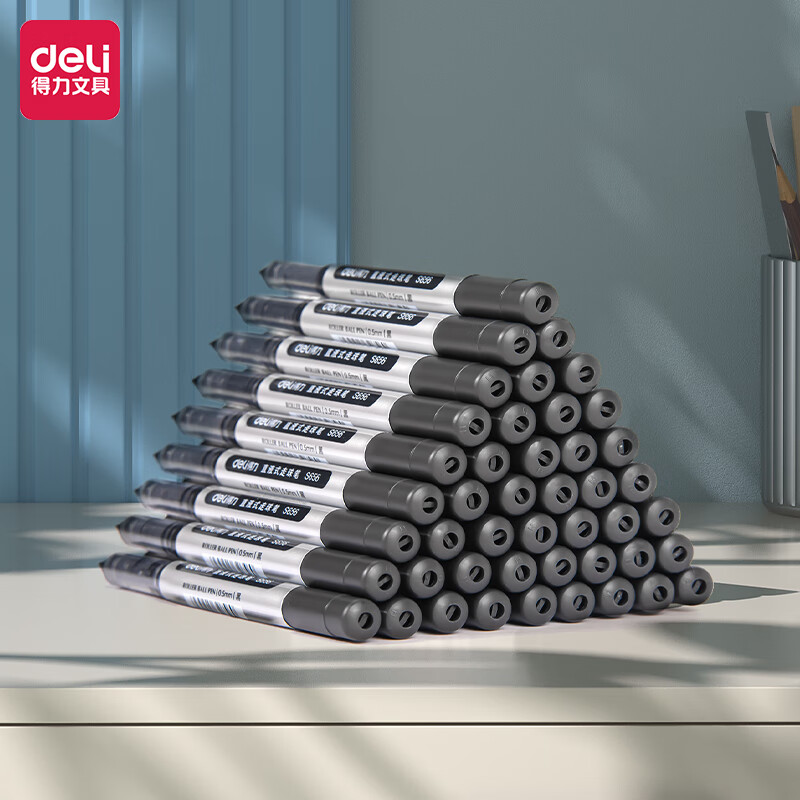 得力(deli)直液笔 0.5mm子弹头学生签字笔 办公中性笔水笔走珠笔 办公用品 黑色 50支/盒 33475 自营
