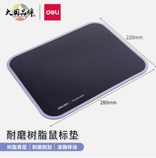 得力(deli)舒适耐磨树脂鼠标垫 办公游戏鼠标垫 280*220mm 黑色2227 自营
