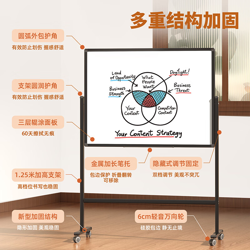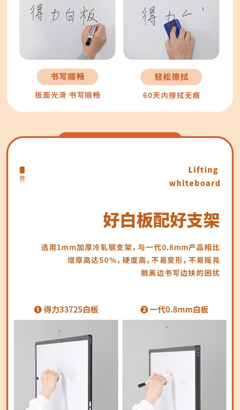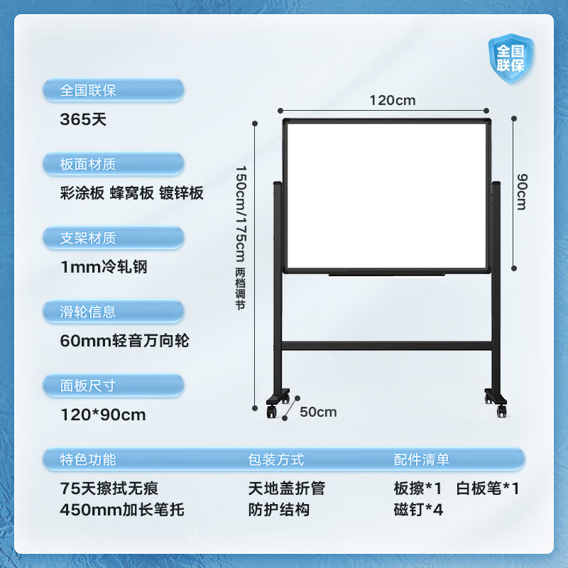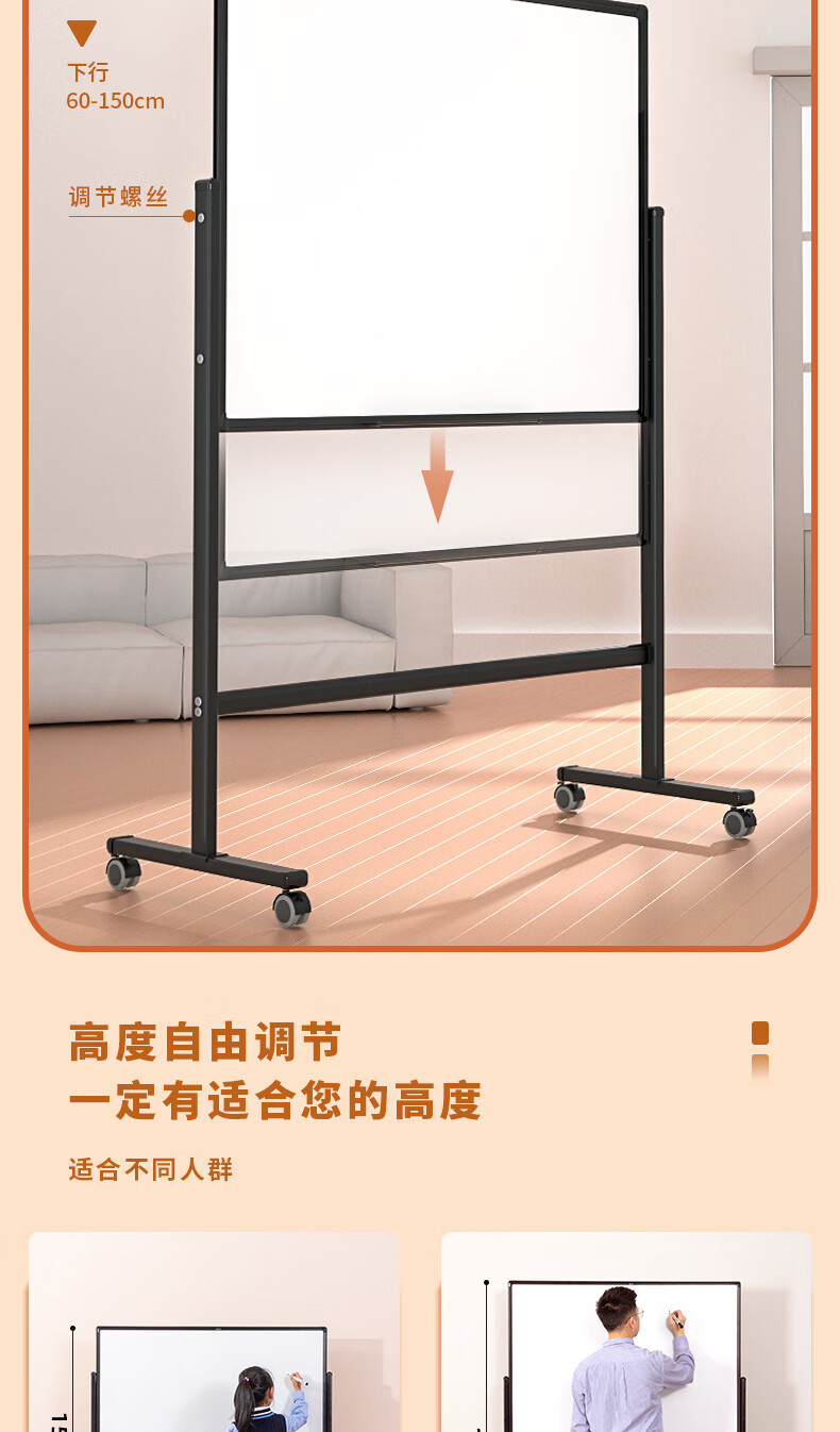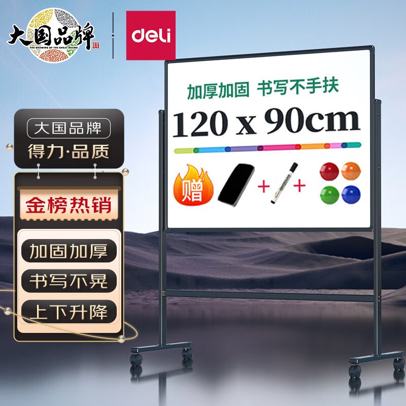 得力(deli)120*90cm支架式白板 白板写字板 书写可移动升降教学儿童画板/办公会议白板黑板家用写字板33725 自营