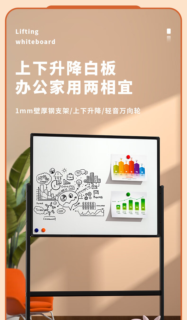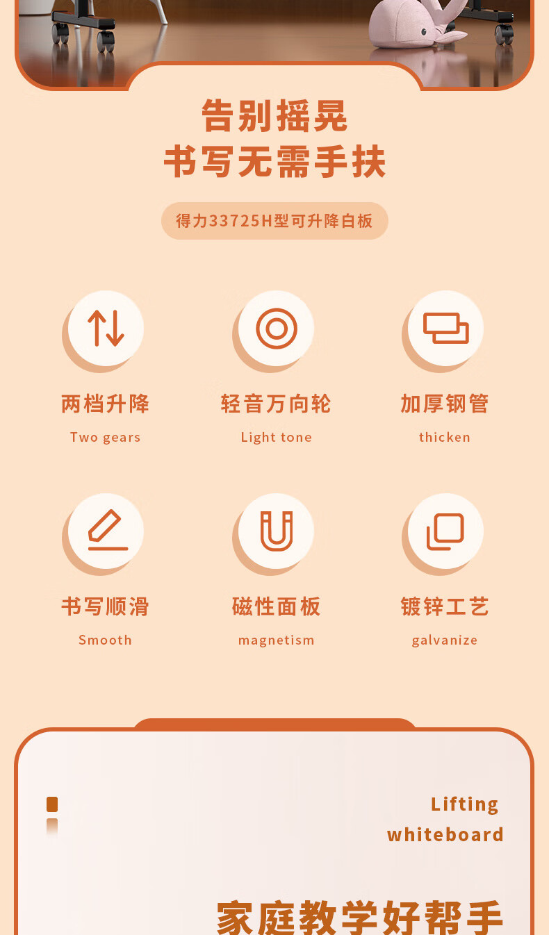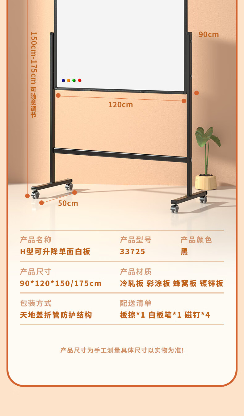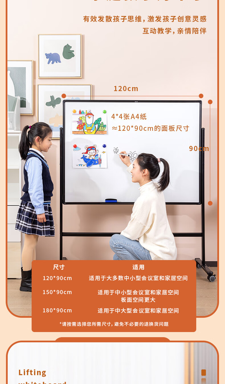 得力(deli)120*90cm支架式白板 白板写字板 书写可移动升降教学儿童画板/办公会议白板黑板家用写字板33725 自营