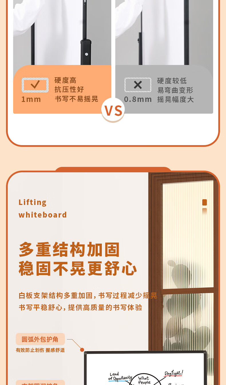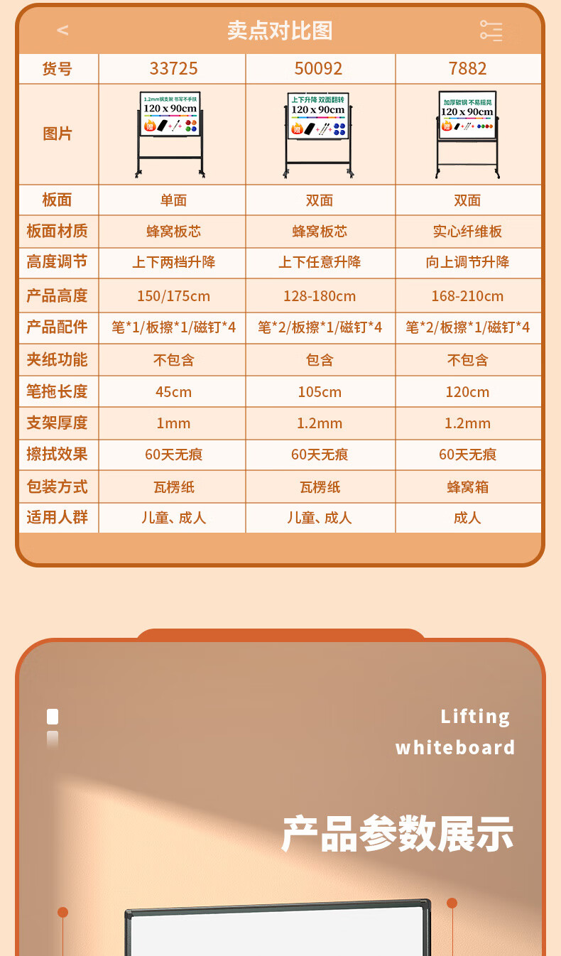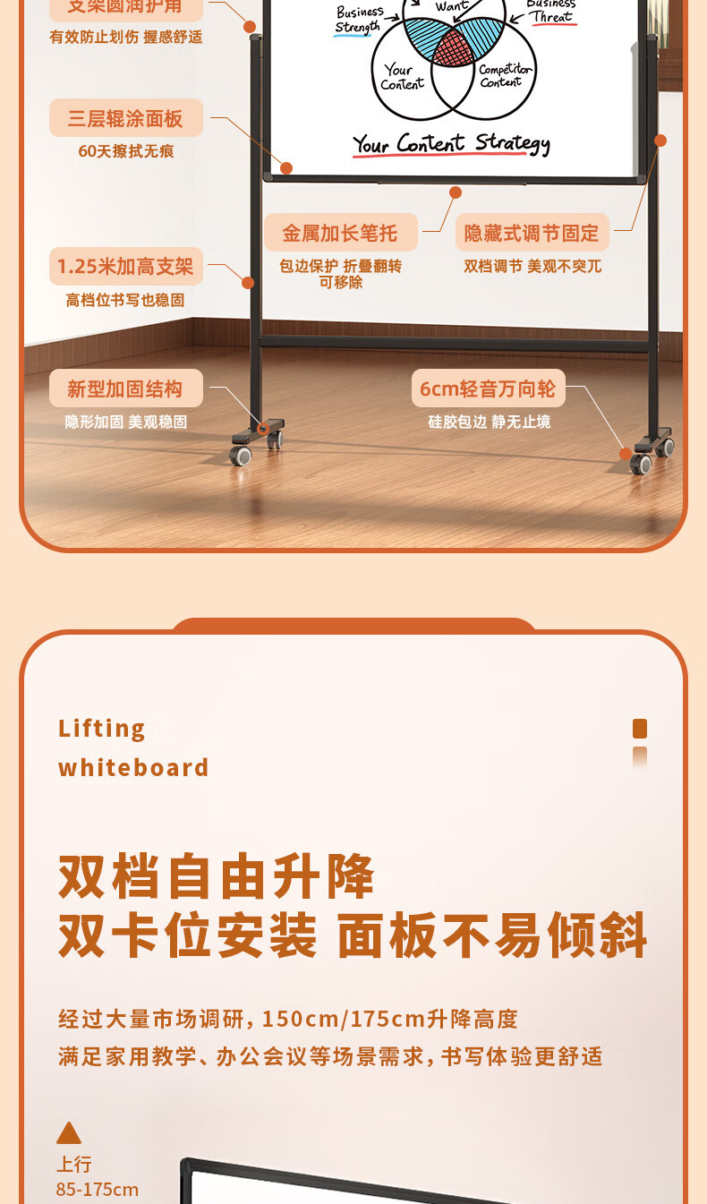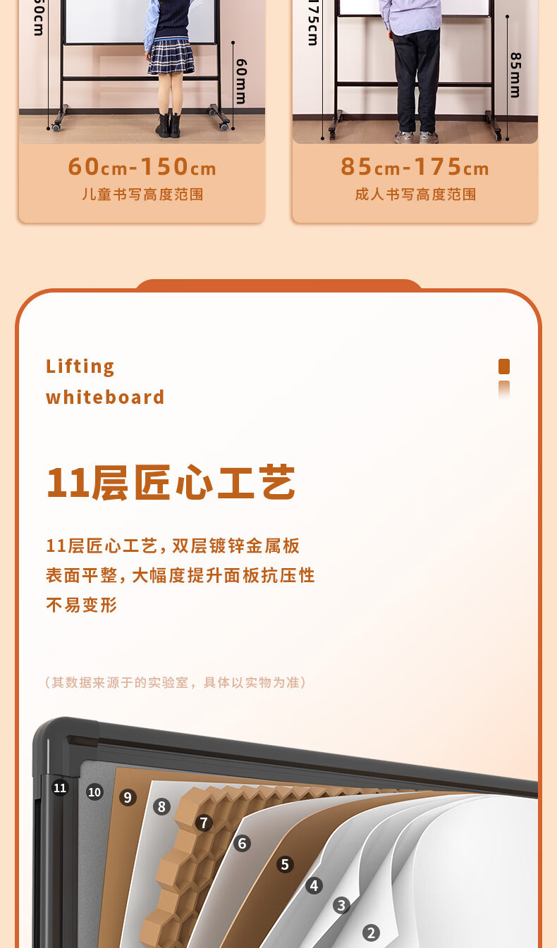 得力(deli)120*90cm支架式白板 白板写字板 书写可移动升降教学儿童画板/办公会议白板黑板家用写字板33725 自营