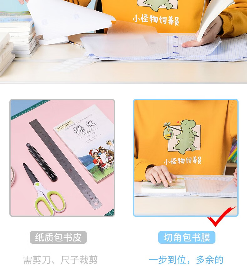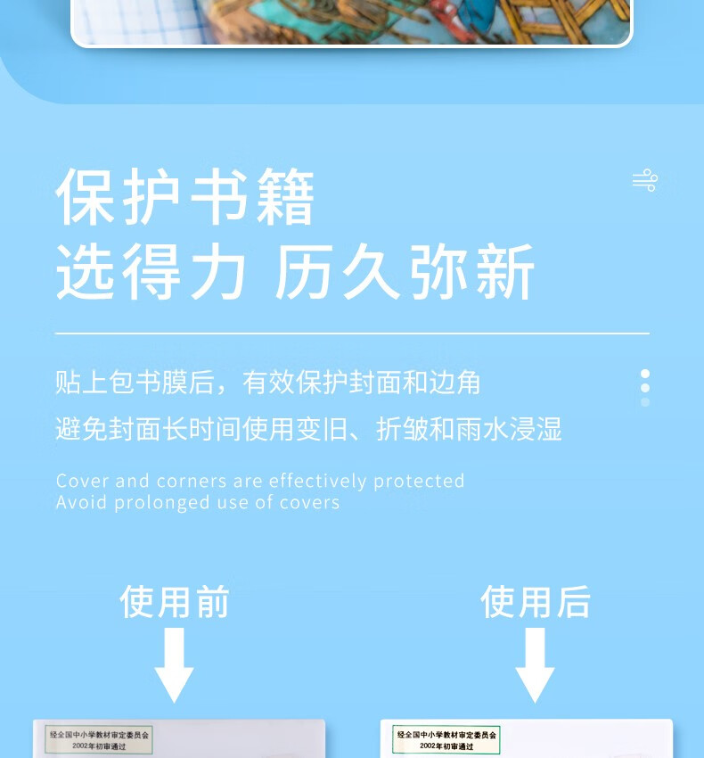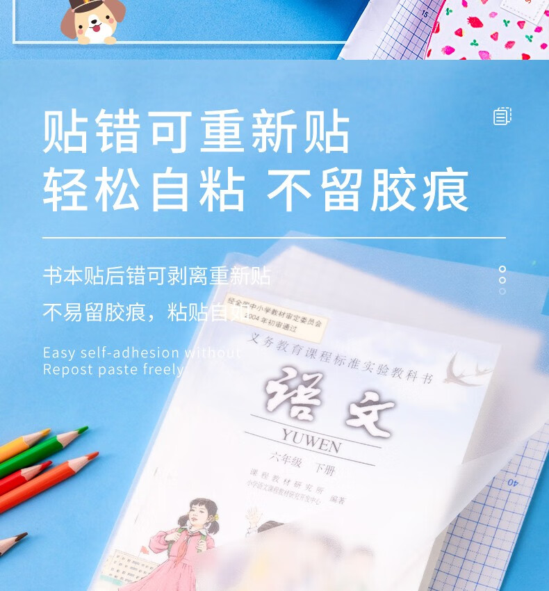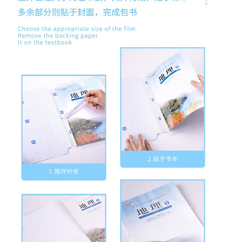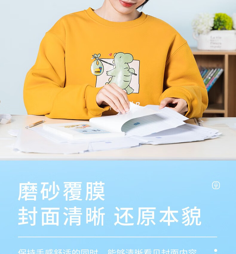得力包书皮纸自粘包书膜透明磨砂书皮A4包书套中小学生用16开书皮包书纸一年级书皮二年级下册三年级书皮 【透明磨砂-免裁款】10张中号附12枚姓名贴 自营