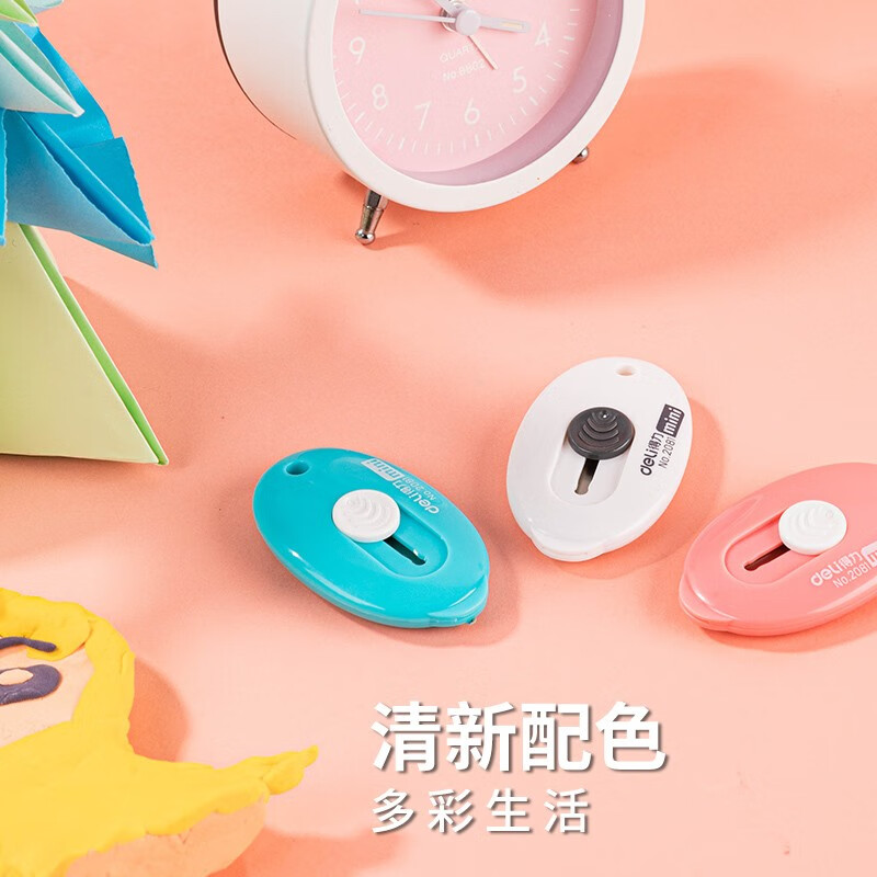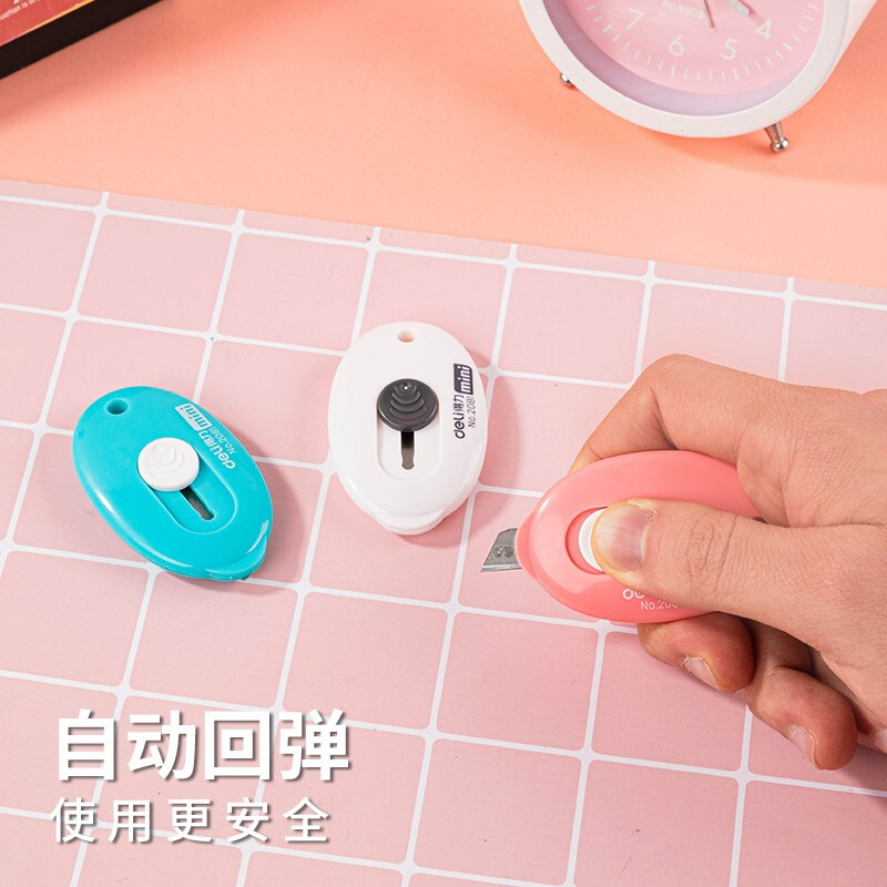 得力(deli) 迷你美工刀小号小型快递刀高颜值学生专用开箱拆快递小刀便携拆包裹裁纸刀壁纸刀 6个装 60*40mm【每色各2个】 自营
