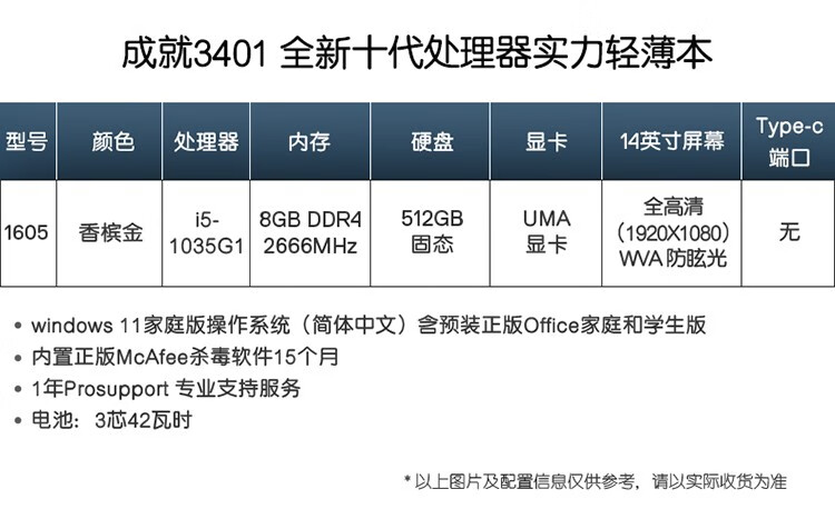 戴尔(DELL)成就3000 3401 14英寸英特尔酷睿i5网课办公学生手提商用轻薄笔记本电脑 1605金 十代i5 8G 512G固态 官方标配 自营