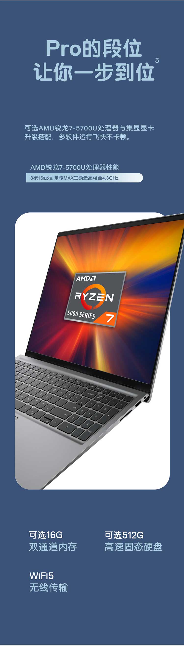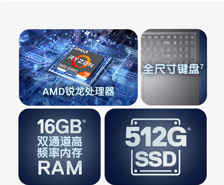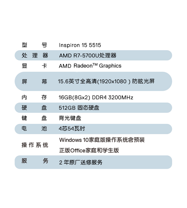 戴尔笔记本电脑dell灵越15-5515 15.6英寸全面屏轻薄商务笔记本电脑(AMD R7-5700U 16G 512G)银 自营