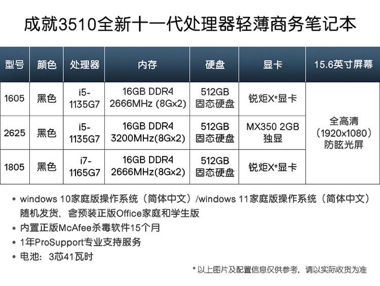 【2年金牌服务】戴尔(DELL)成就Vostro3510十一代i5/i7窄框全面屏超薄轻薄笔记本电脑 1605黑11代i5/16G/512G/锐炬显卡 官方标配 自营