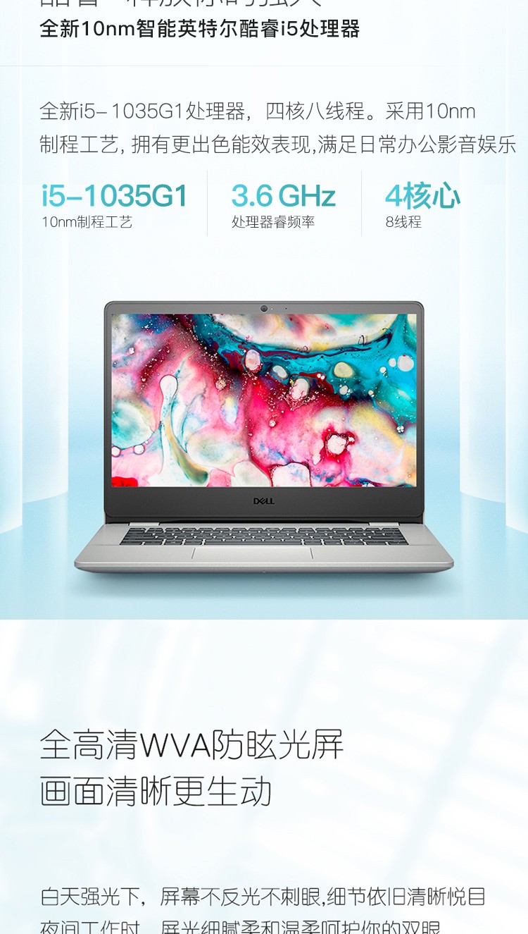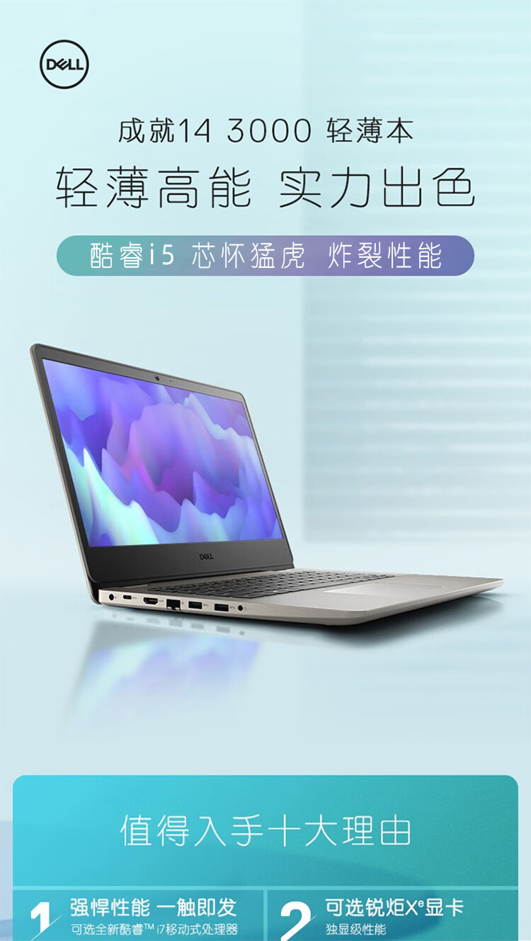 戴尔(DELL)3400灵越5000 14英寸酷睿i5超极本3401轻薄学生游戏办公手提笔记本电脑女 成就 酷睿i5-1035G1 16G内存/512G高速固态【定制版】 自营