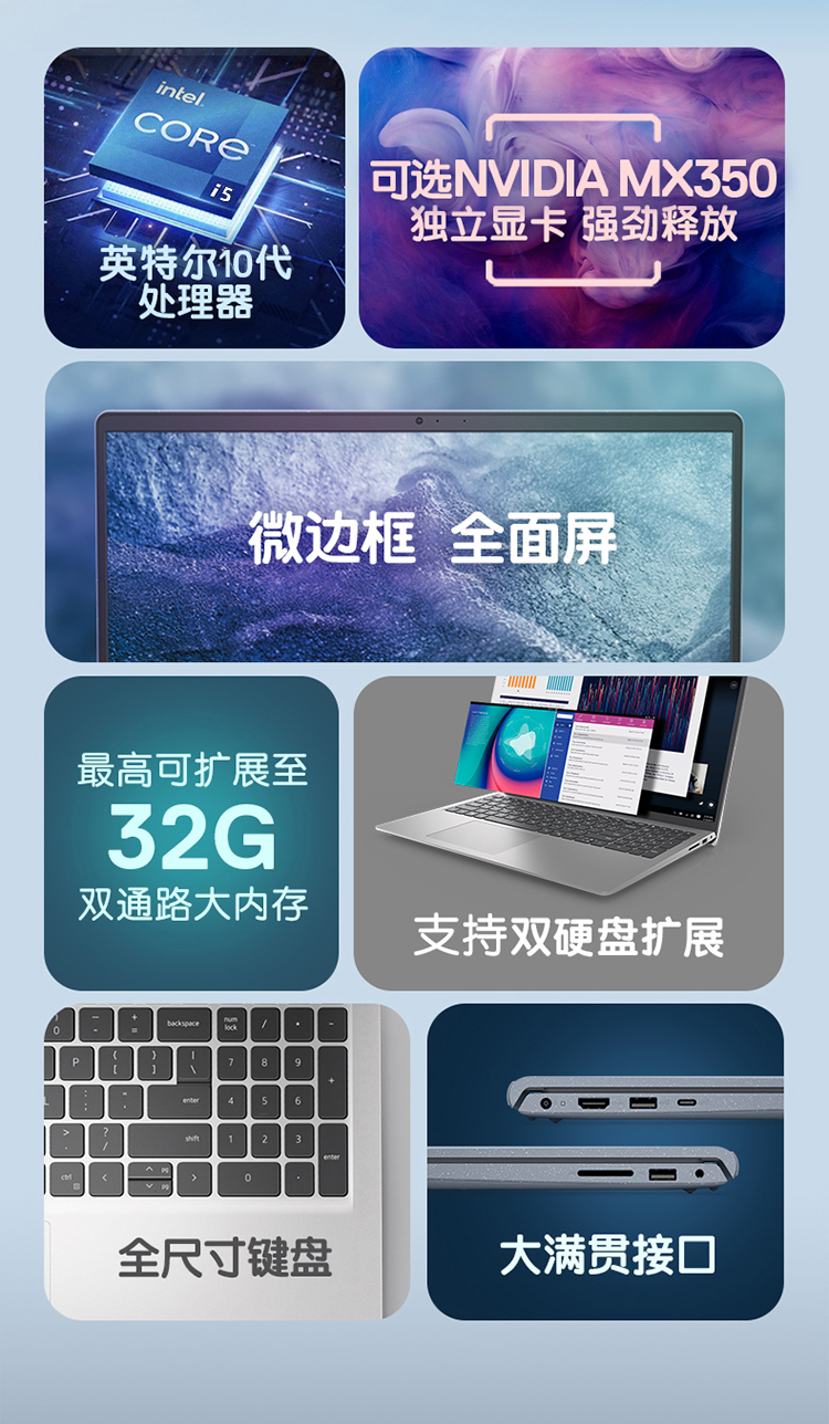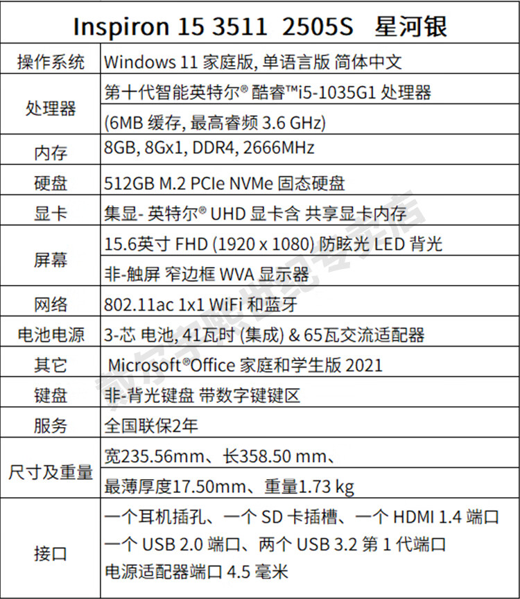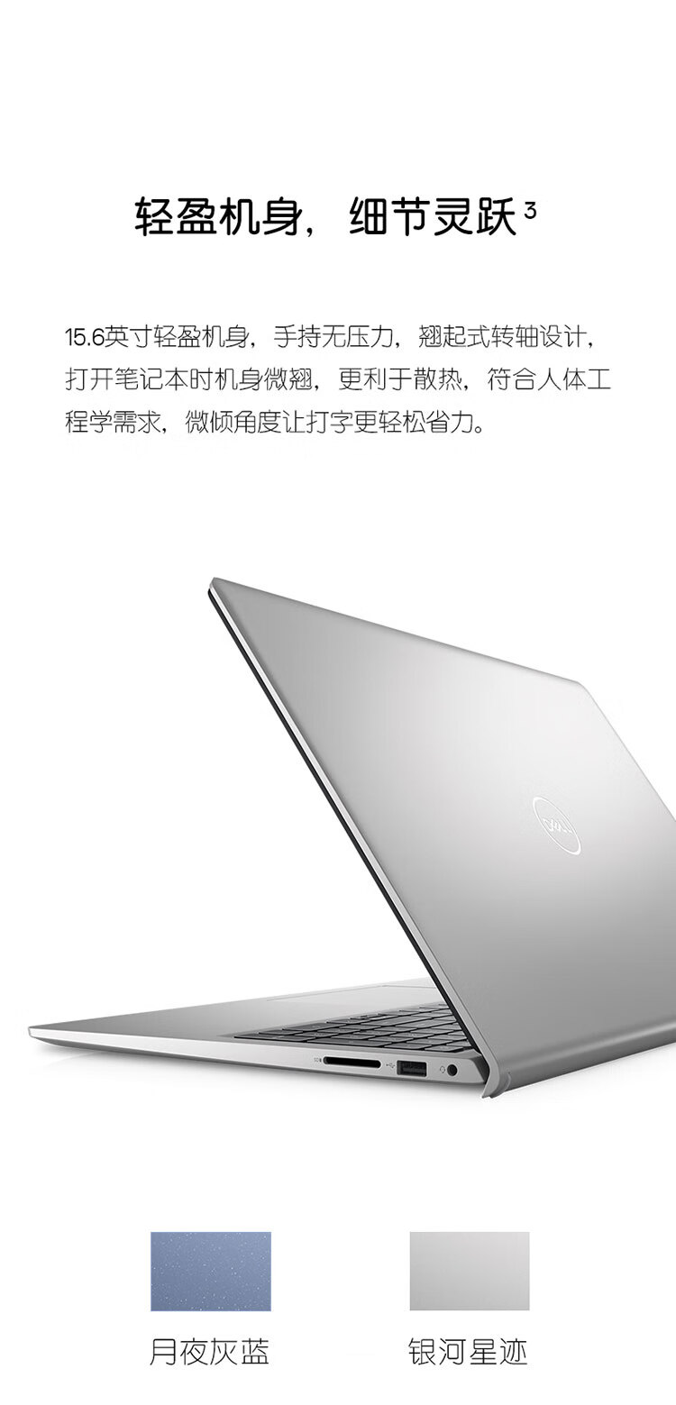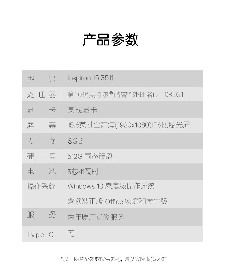 戴尔(DELL) 灵越3511 15.6英寸微边框轻薄学生办公手提笔记本电脑 银色 i5-1035G1 16GB 512G高速固态 定制 自营