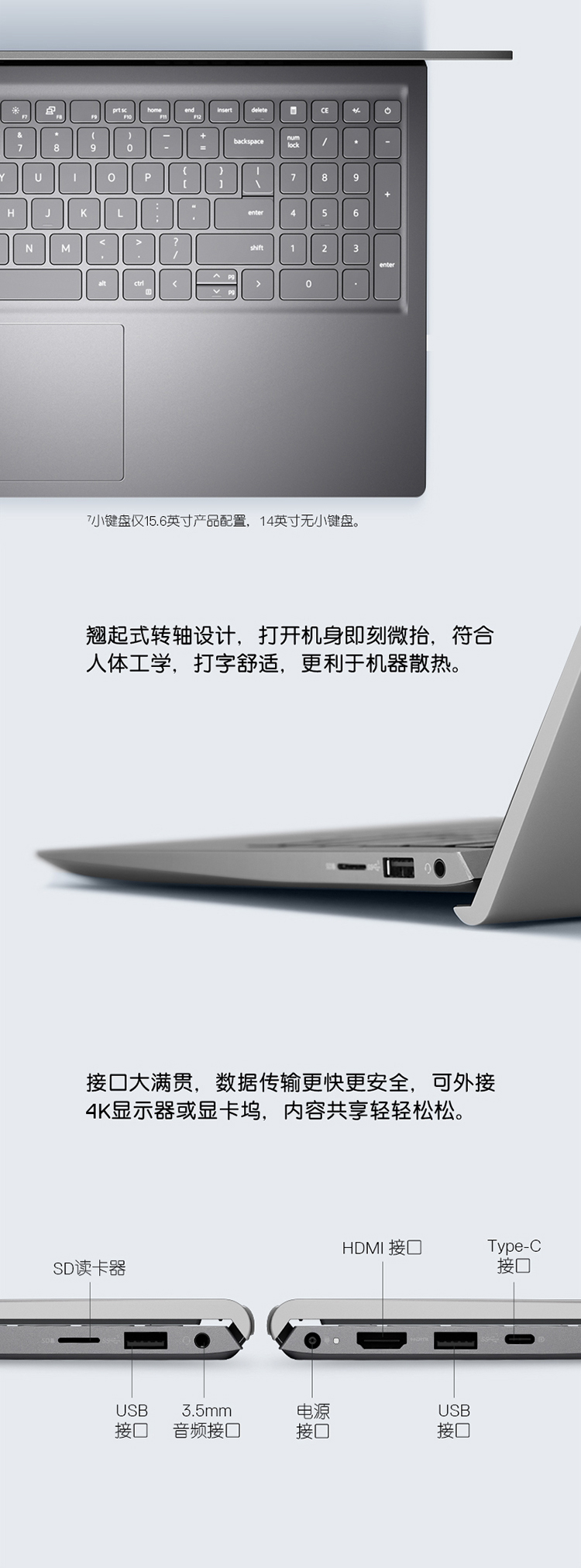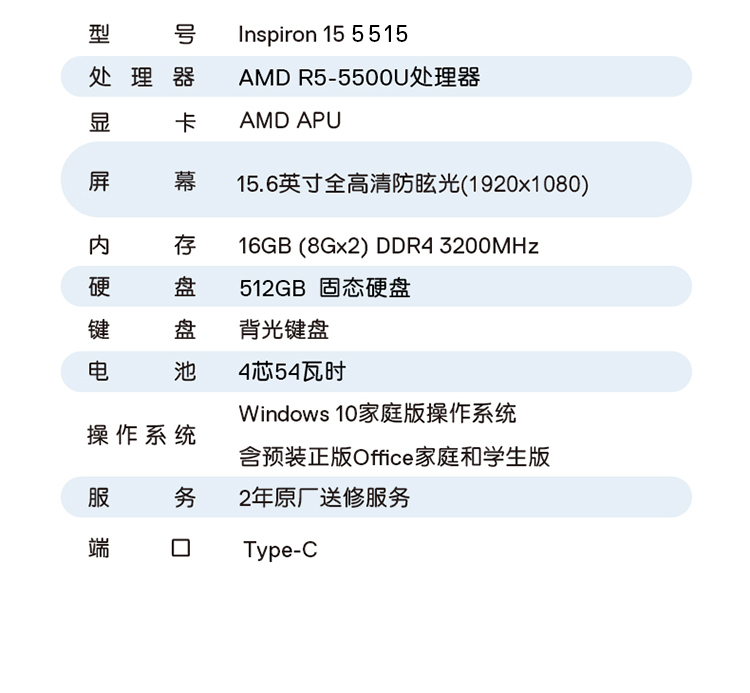 戴尔笔记本电脑dell灵越15-5515 15.6英寸全面屏轻薄商务笔记本电脑(AMD R5-5500U 16G 512G)银 自营
