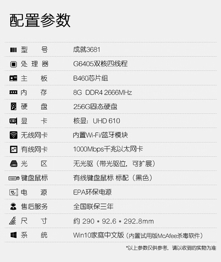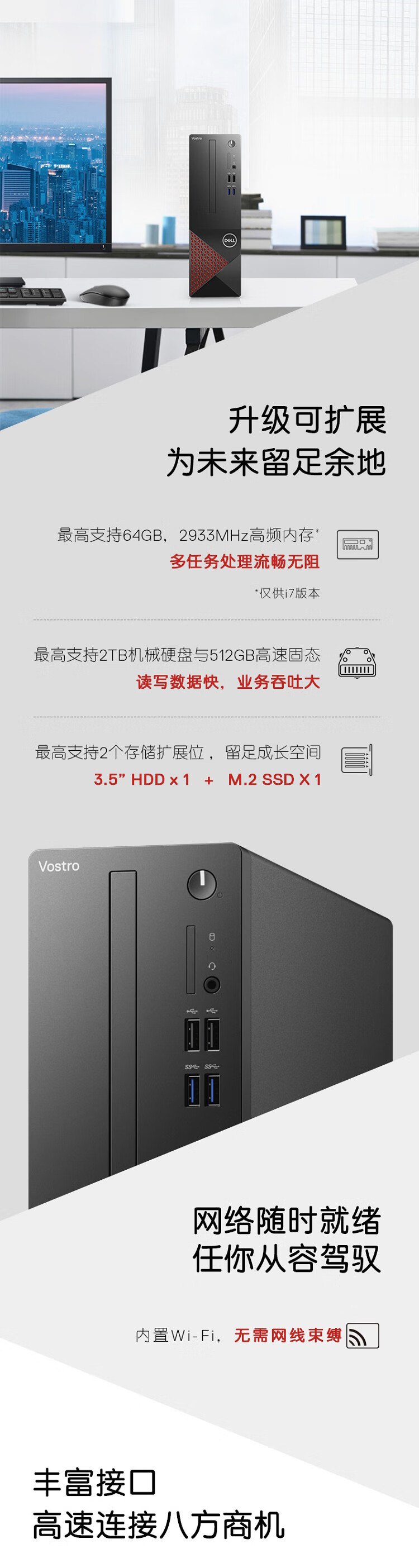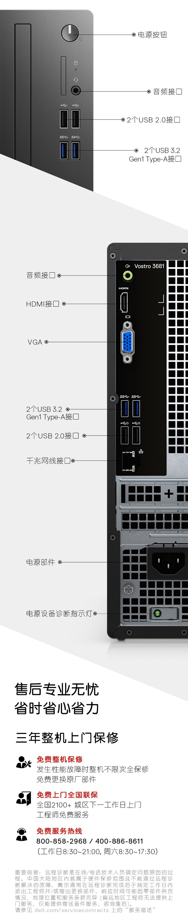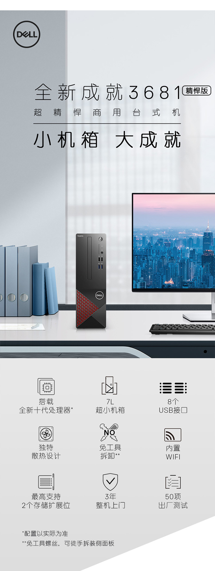 戴尔dell成就3681 办公电脑 商用台式机小机箱电脑主机3690同款外观 英特尔G6405 8G 256G固态 定制 主机+21.5英寸显示器 自营