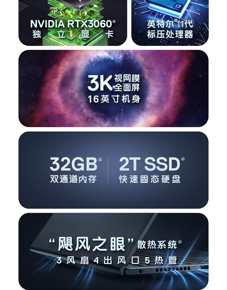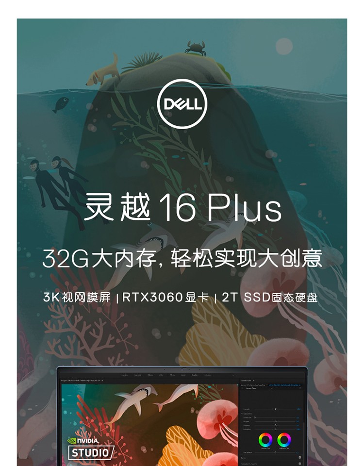 戴尔(DELL)灵越16Plus 7610 16英寸11代酷睿i7设计师轻薄学生游戏画图笔记本电脑 i7-11800H/RTX3060-6G/3K屏 32G内存 1TB高速固态 定制 自营