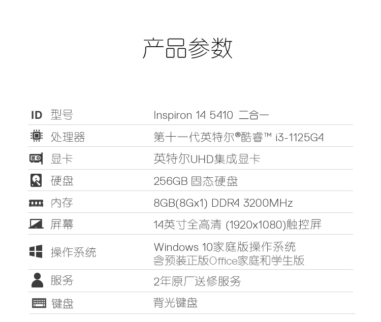 戴尔DELL灵越14-5410 14英寸2合1触控翻转窄边框K12笔记本电脑11代i3-1125G4 8G 256G 集成显卡 银 自营