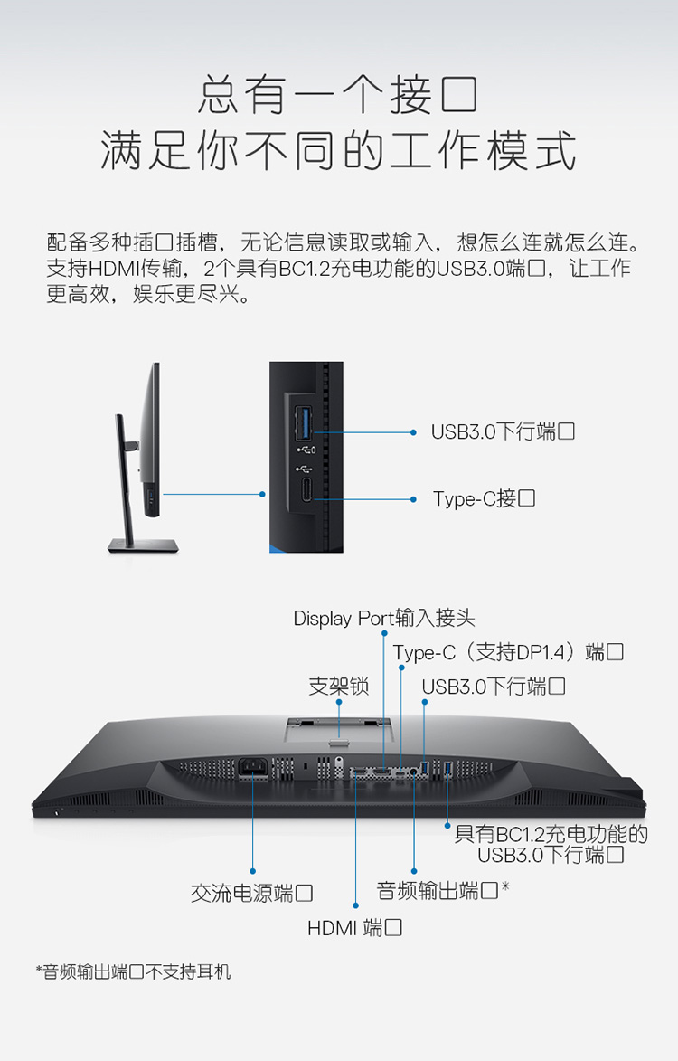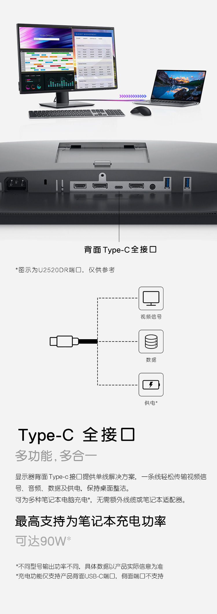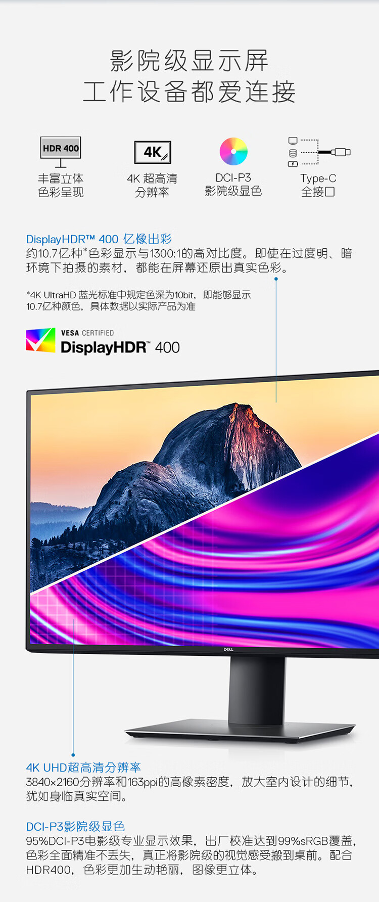 戴尔(DELL)U2720QM 27英寸 4K 超清 IPS Type-C 90W反向充电 HDR400 旋转升降 四边微边框 电脑显示器 自营