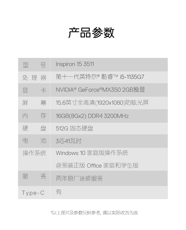 戴尔笔记本电脑dell灵越3511 15.6英寸高性能商务全面屏办公轻薄本(11代i5-1135G7 16G 512G MX350 2G)银 自营