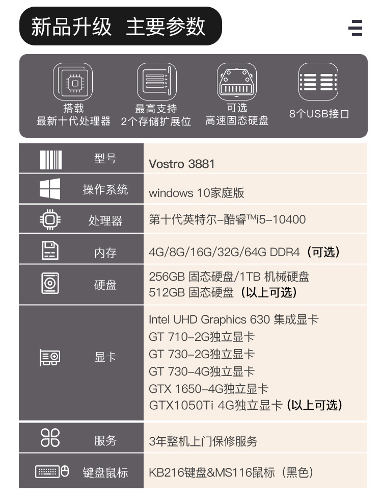 戴尔dell成就3881台式机电脑办公主机游戏商用家用商务炒股迷你全套整机酷睿6核i5-10400 单主机(无显示器) i5-10400 16G 512G固态 核显 定制 自营