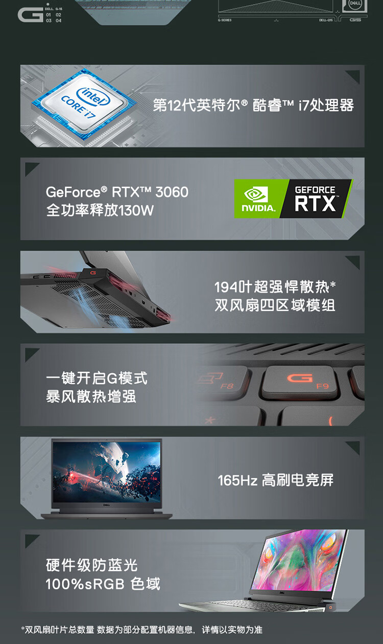 戴尔(DELL)游匣G15 2022款 15.6英寸新12代标压学生游戏电竞设计高性能笔记本电脑 16G DDR5 512G固态 标配版 14核i7-12700H 3060显卡 165Hz 自营