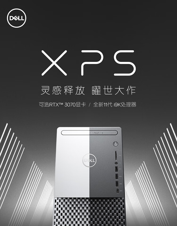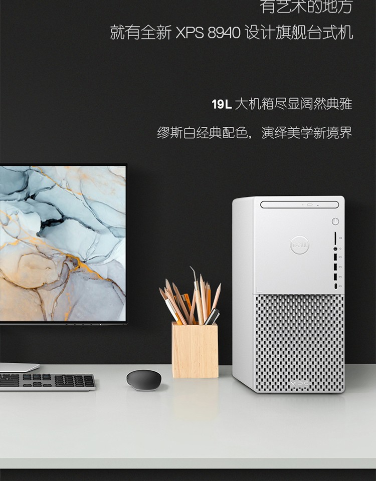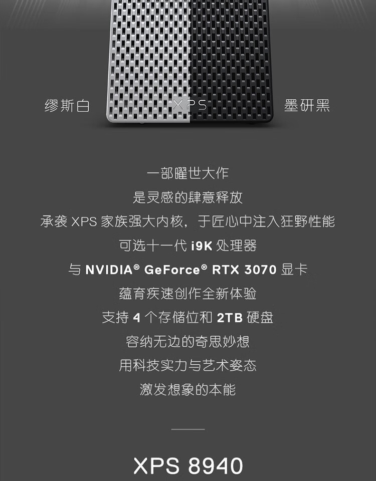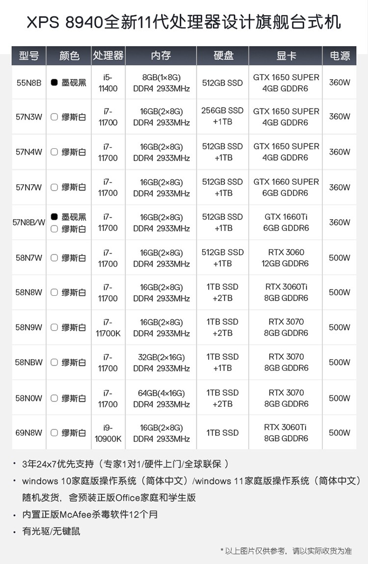 戴尔(DELL) XPS 8940 2021新品11代酷睿设计旗舰可选3070显卡游戏电竞台式机电脑 57N4白11代i7 16G 1650S 混合硬盘 官方标配 自营