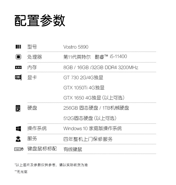 戴尔dell成就5890台式机电脑主机游戏办公PS设计3D渲染制图家用商用全套整机四年上门酷睿6核 主机+21.5英寸高清显示器 i5-11400 8G 1T 256G固态 定制 自营