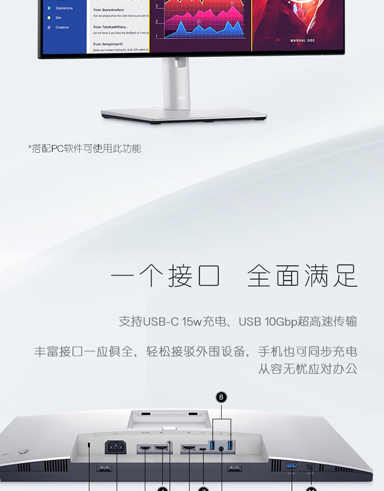 ¥1648.03戴尔(DELL)S2722QC 27英寸4K电脑显示器屏幕IPS 内置音箱可分屏USB-C全接口预定 S2722QC : 99%sRGB色域 官方标配