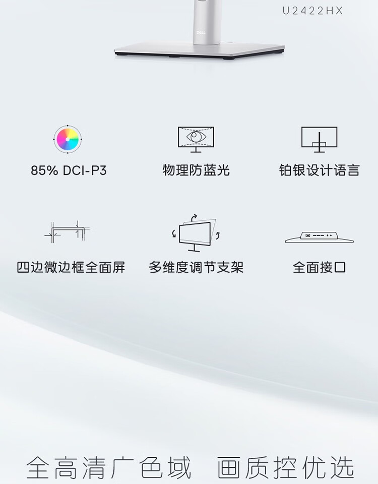 ¥1260.03戴尔(DELL) U2422H 23.8英寸显示器(HDMI+DP接口)U2419升级