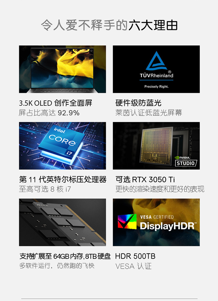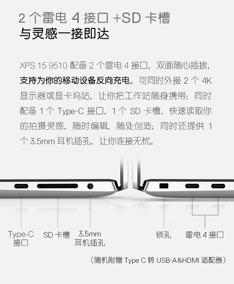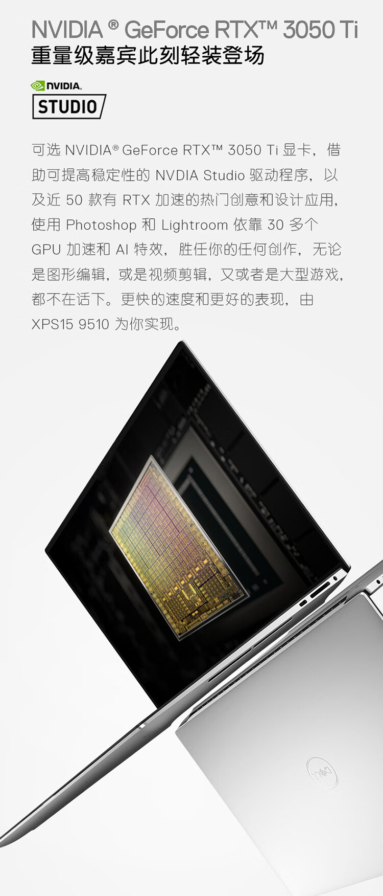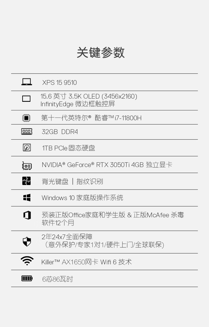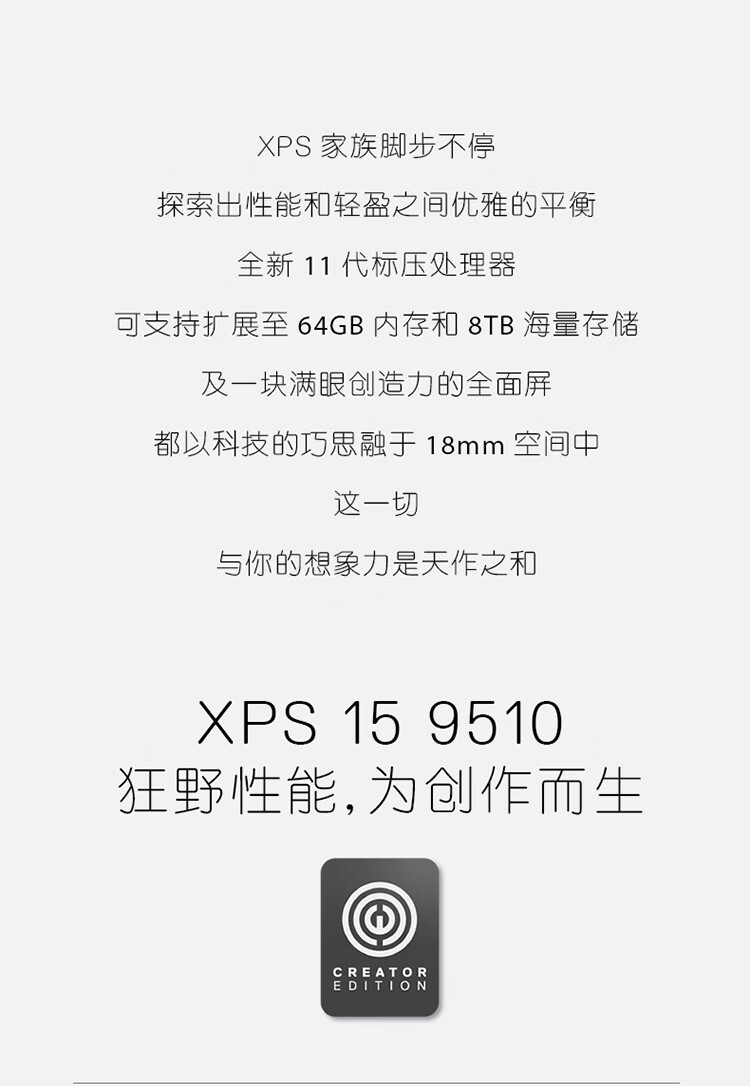 戴尔(DELL)XPS15 9510 15.6英寸十一代轻薄便携设计师高清微边框游戏笔记本电脑 i7-11800H/RTX3050Ti-4G独显 16G/512G Pci-e固态 定制 自营