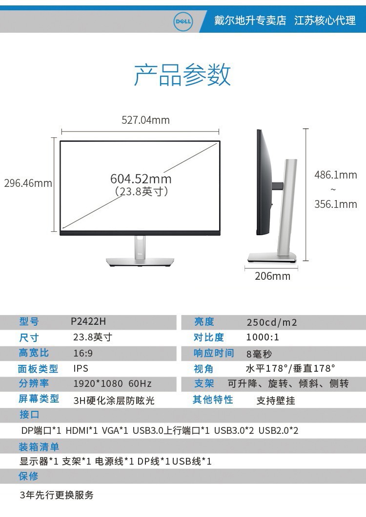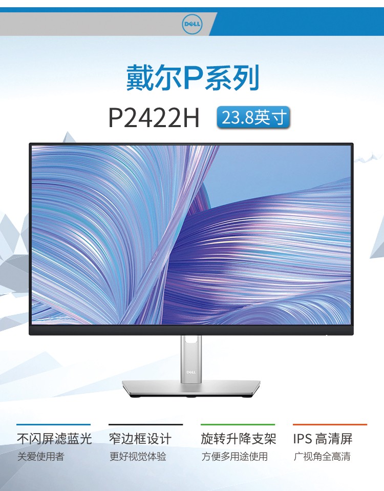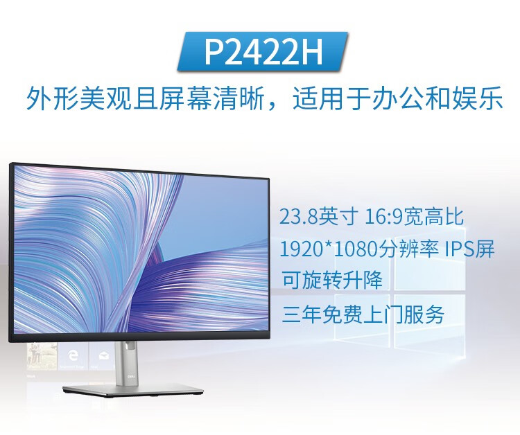 戴尔(DELL) P2422H 23.8英寸IPS显示屏幕办公液晶电脑显示器24 P2419H升级款 自营
