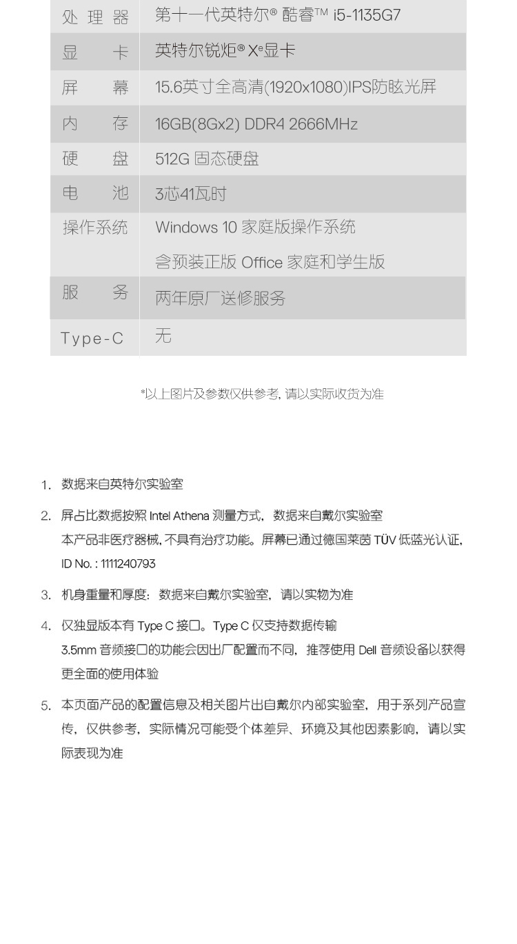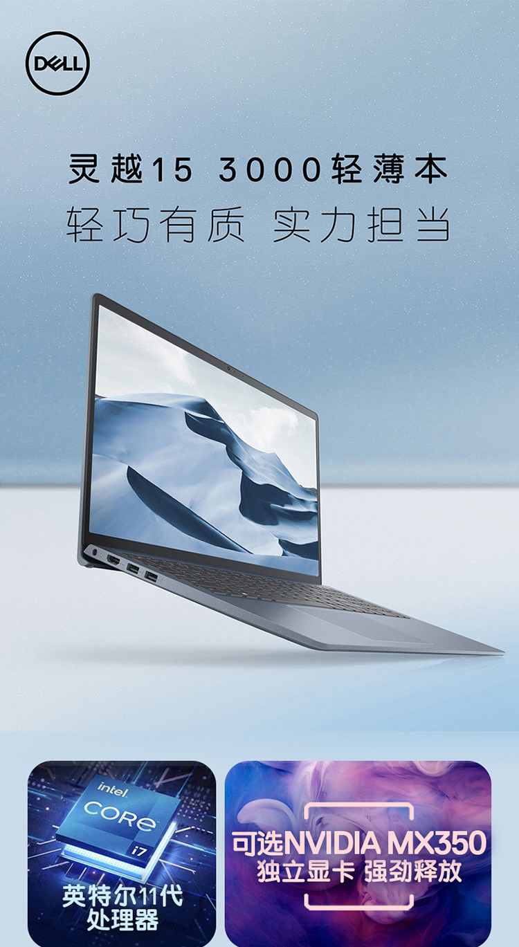 戴尔(DELL)2021款灵越3511 15.6英寸高性能商务全面屏办公轻薄本笔记本电脑 11代i7-1165G7 锐炬Xe显卡 8GB内存 512GB高速固态 定制版 自营