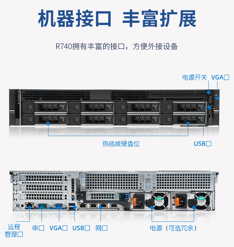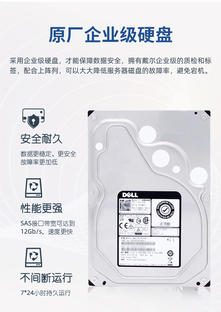 戴尔(DELL) PowerEdge R740双路机架式服务器主机 大数据人工智能 R740 1*铜牌3204 6核1.9G/单电 16G内存/1T SATA/ S140 自营