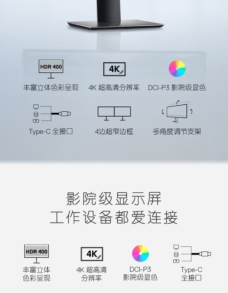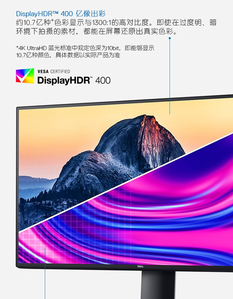 戴尔(DELL)U2720QM 27英寸4K超清IPS HDR400影院级专业修图电脑显示器屏幕 U2720QM 低蓝光 +99升至5年原厂上门更换服务 自营