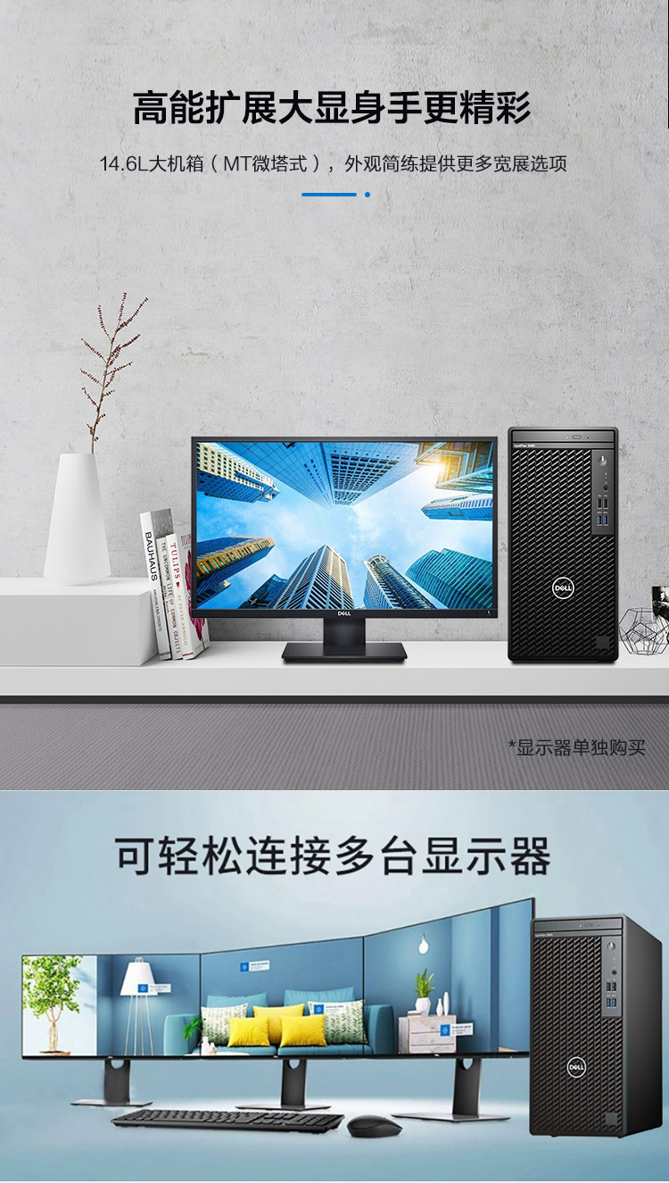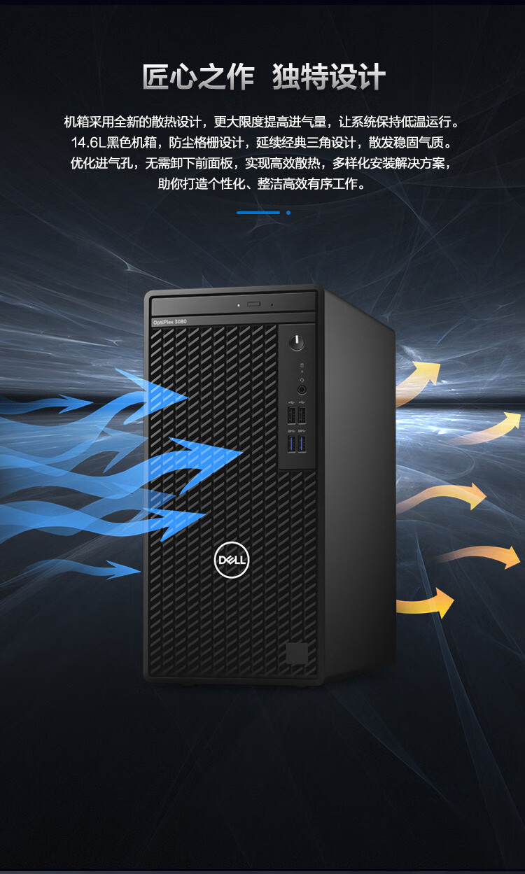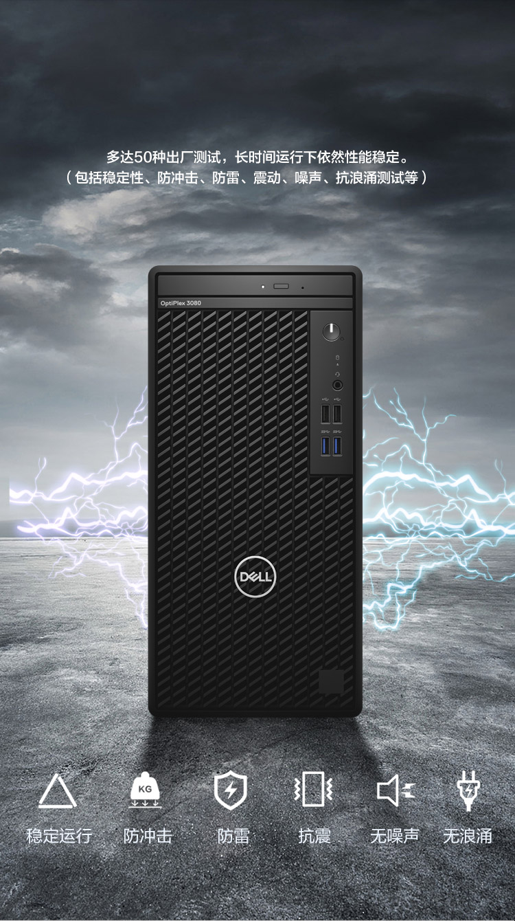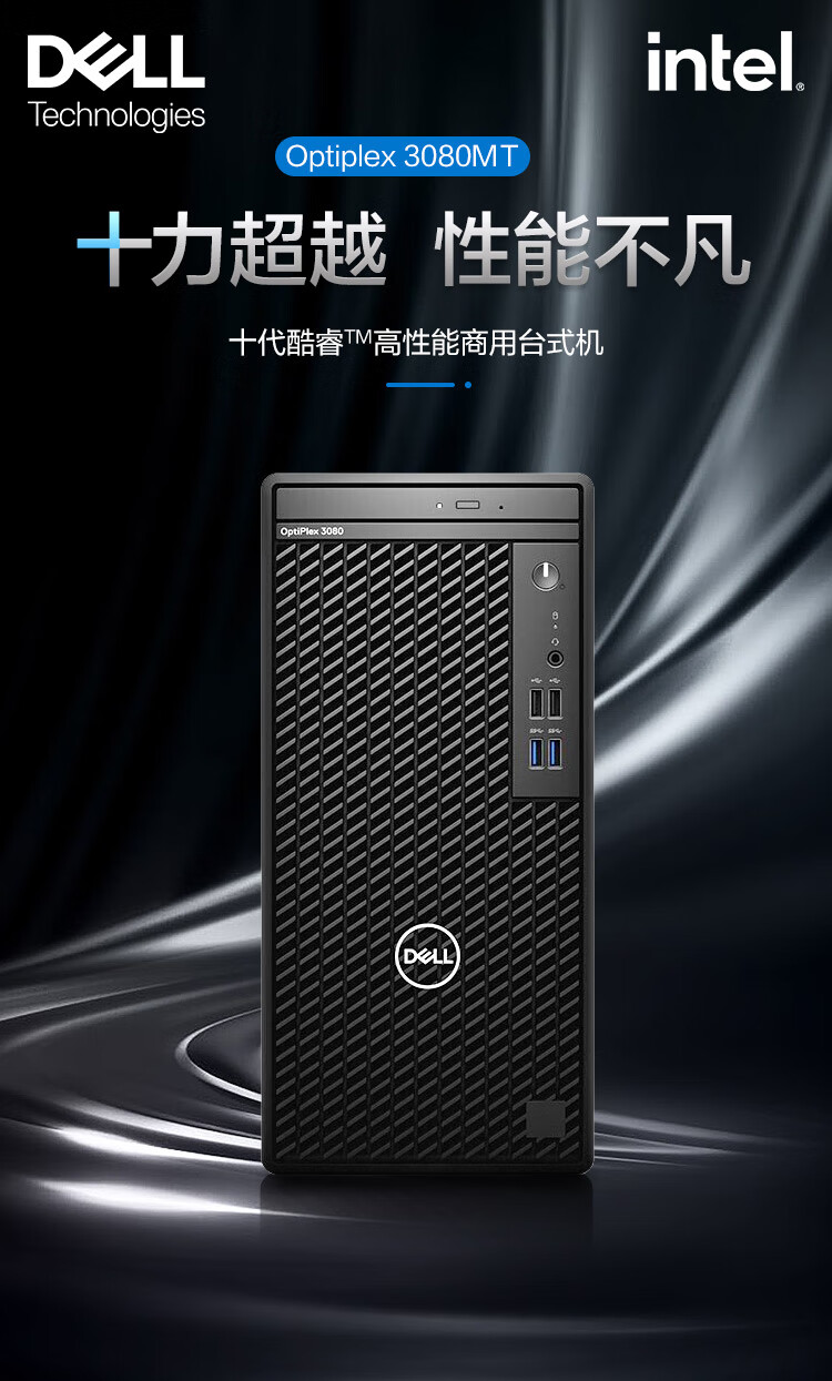 戴尔台式机(DELL)Optiplex 3080MT商用办公绘图设计游戏台式电脑主机 标配 i3-10100/4G/1T/集显 全国联保 三年硬件上门 自营
