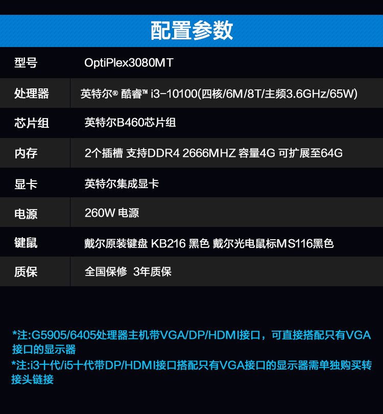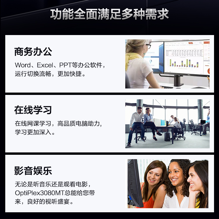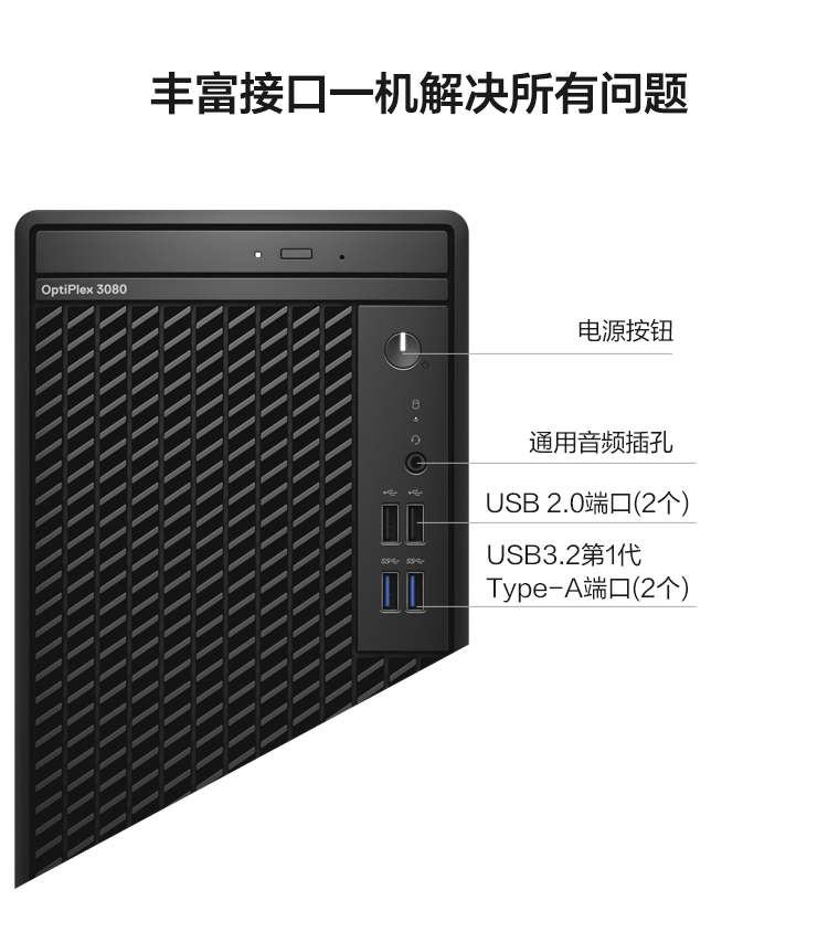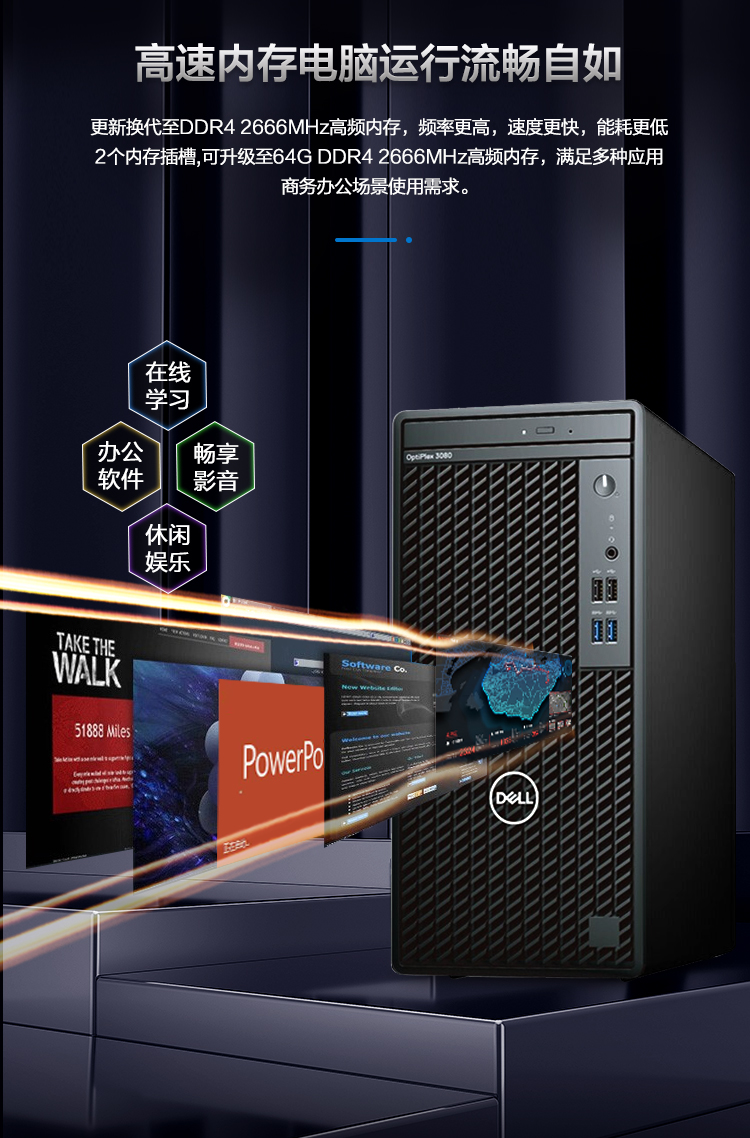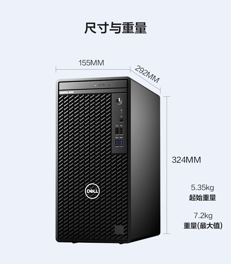 戴尔台式机(DELL)Optiplex 3080MT商用办公绘图设计游戏台式电脑主机 标配 i3-10100/4G/1T/集显 全国联保 三年硬件上门 自营