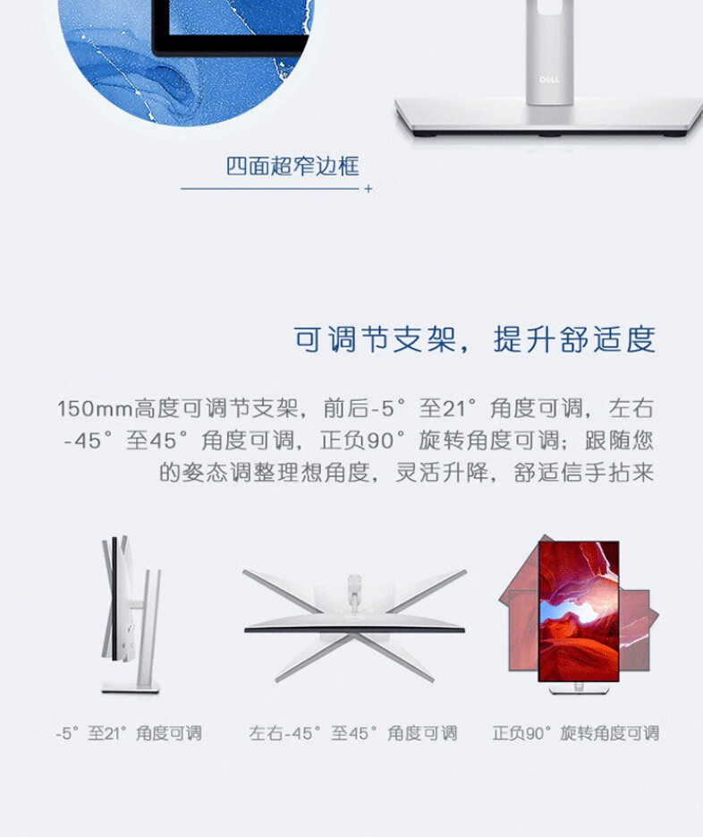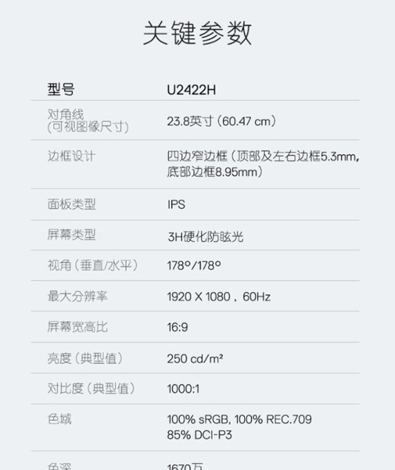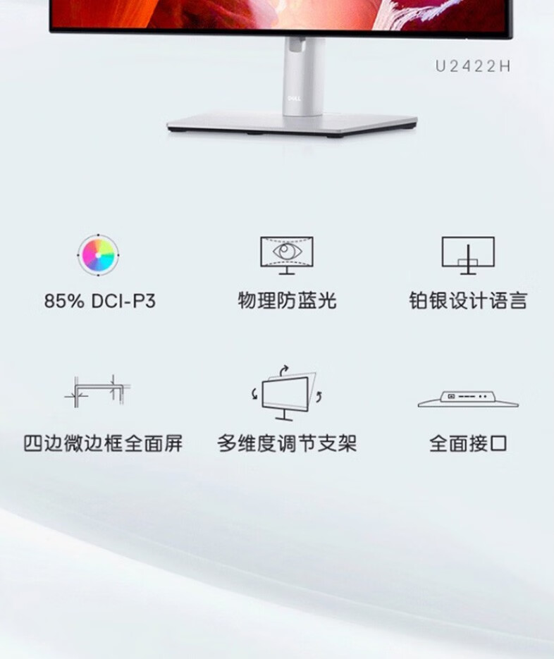 戴尔(DELL) U2422H 23.8英寸显示器(HDMI+DP接口)U2419升级 自营