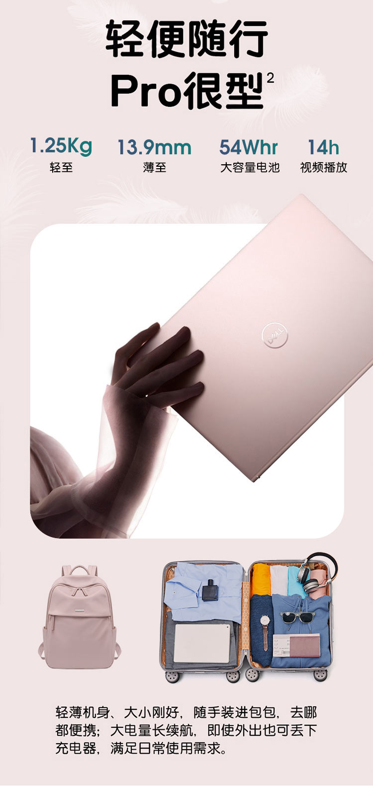 戴尔笔记本电脑DELL灵越13Pro5310 13.3英寸高色域商务办公学生女生轻薄本手提新11代 i5-11320H 16G 512G 2.5K屏粉 100%高色域 金属机身 自营