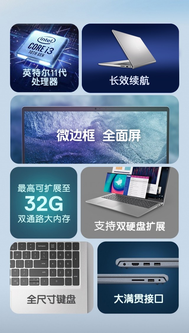 戴尔(DELL)灵越3511-1305 15.6英寸商务办公学习高清屏笔记本 i3-1115G4集显 8G内存256G固态 定制 自营