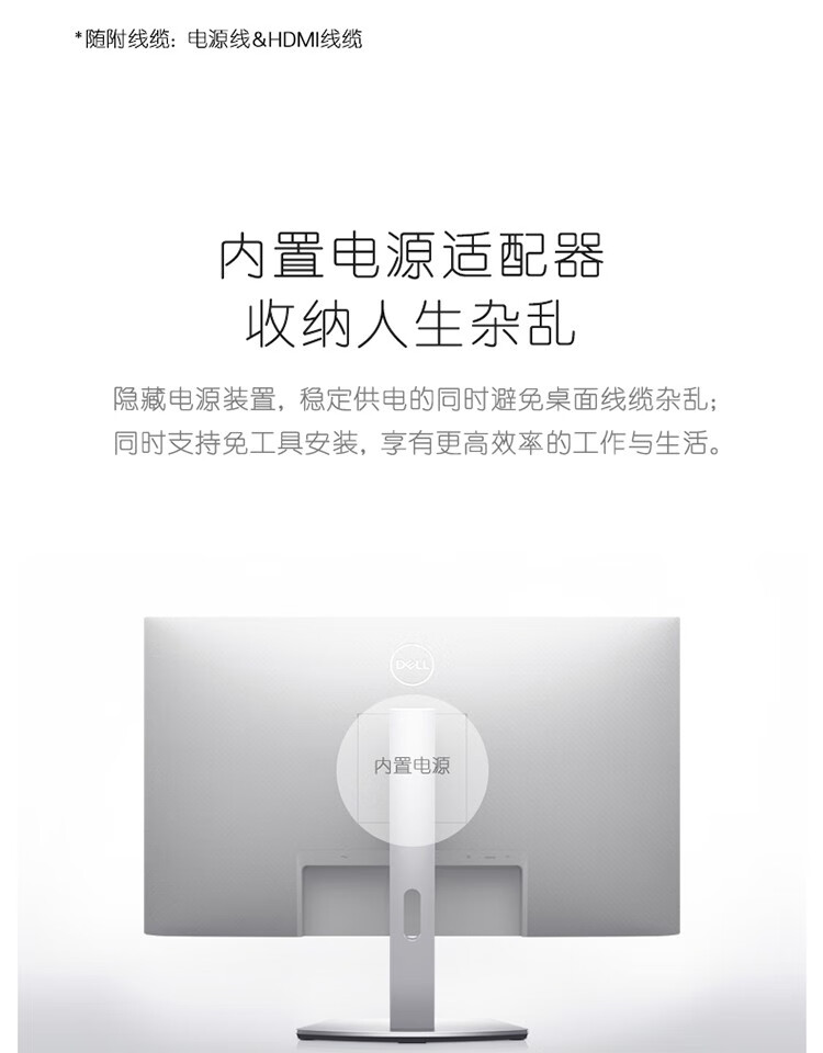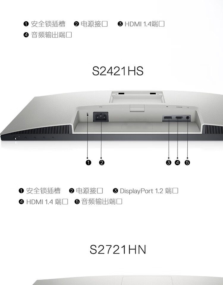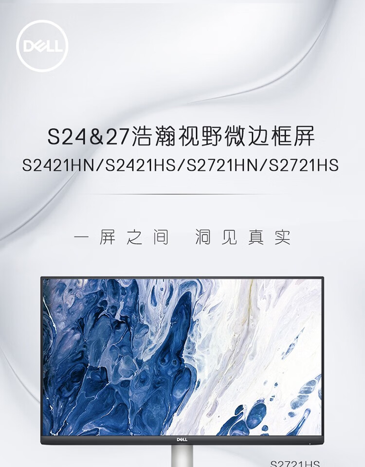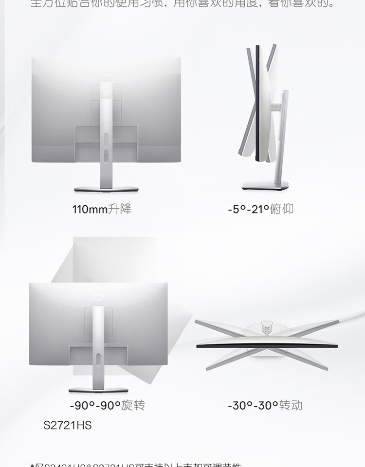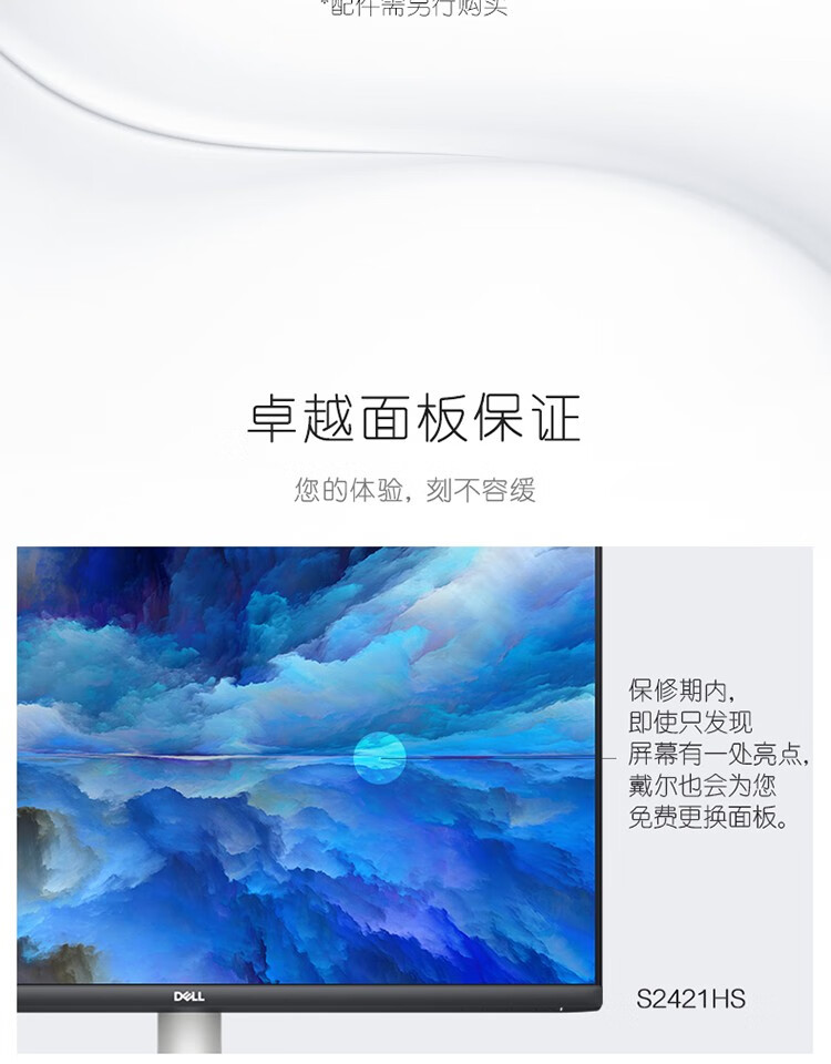 戴尔(DELL)2421 23.8英寸IPS电脑显示器FreeSync可壁挂1080高清 广视角预定 S2421HS HDMI/DP接口 可调节支架 官方标配:低蓝光无闪屏 72%色域 自营
