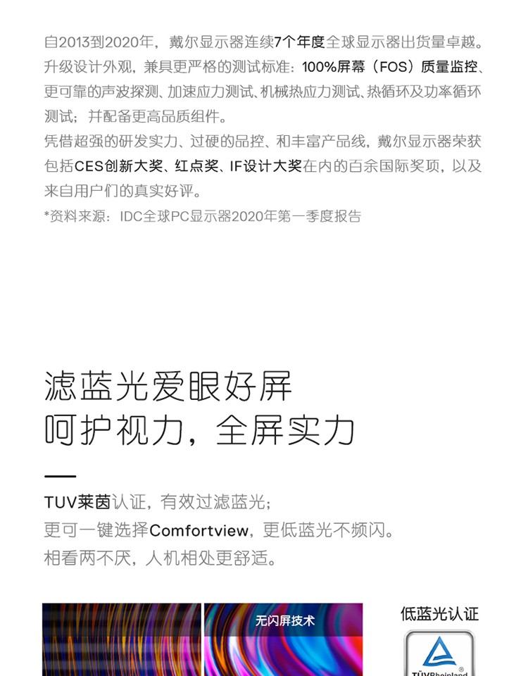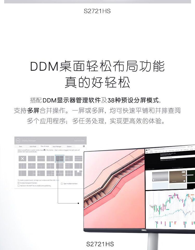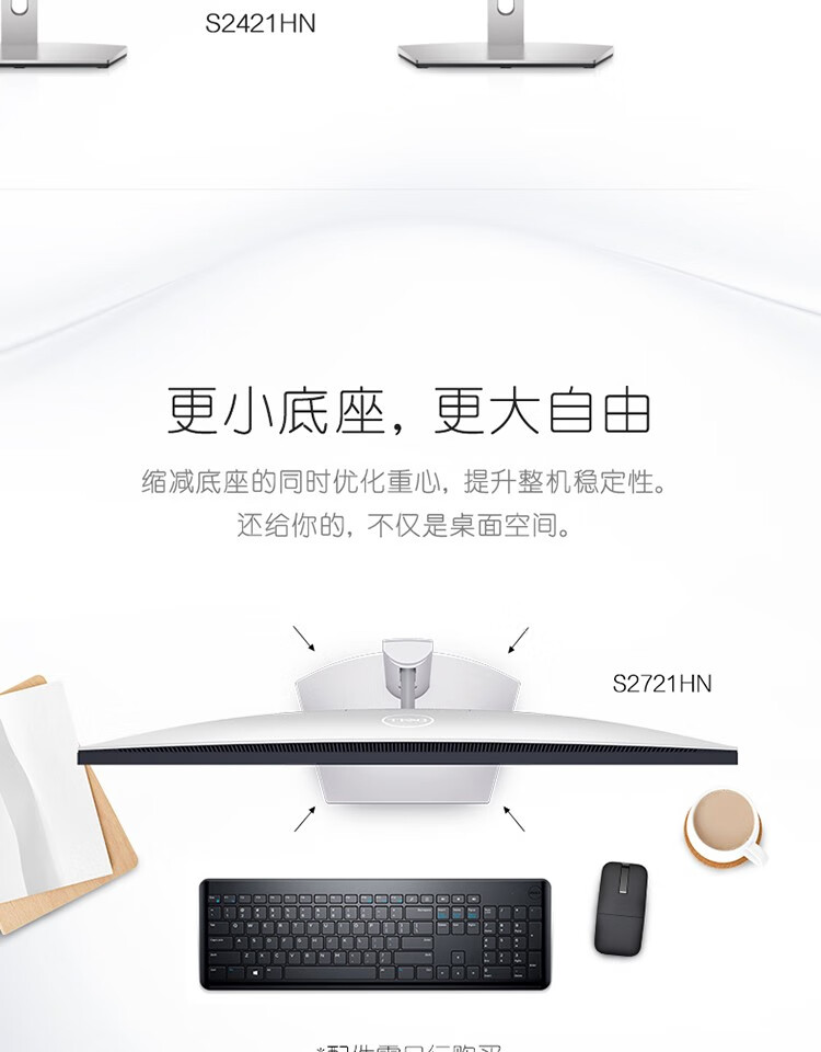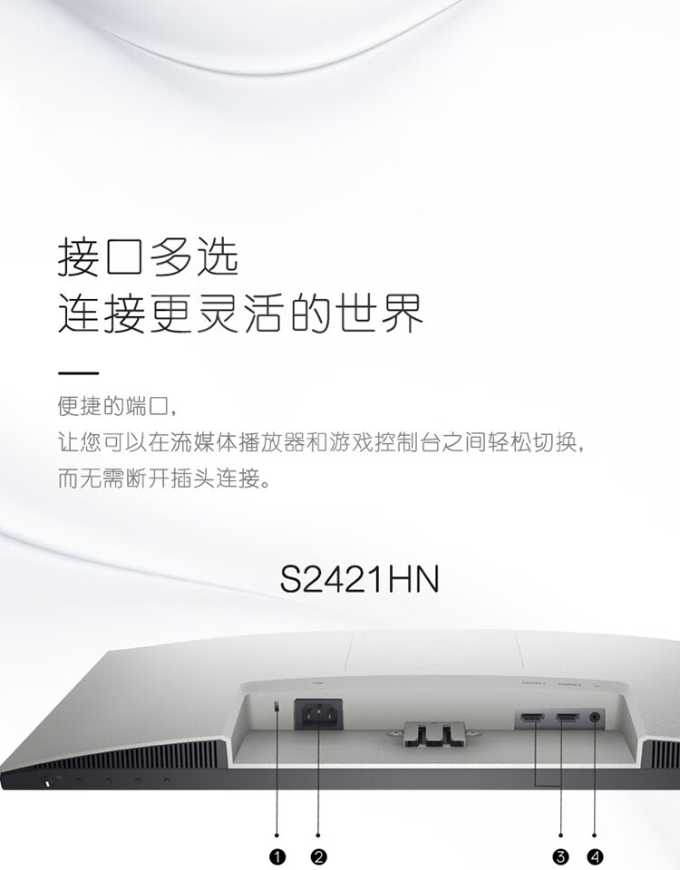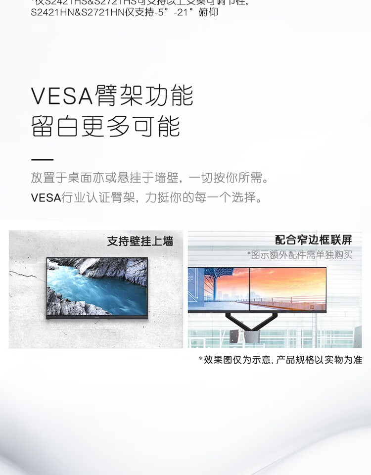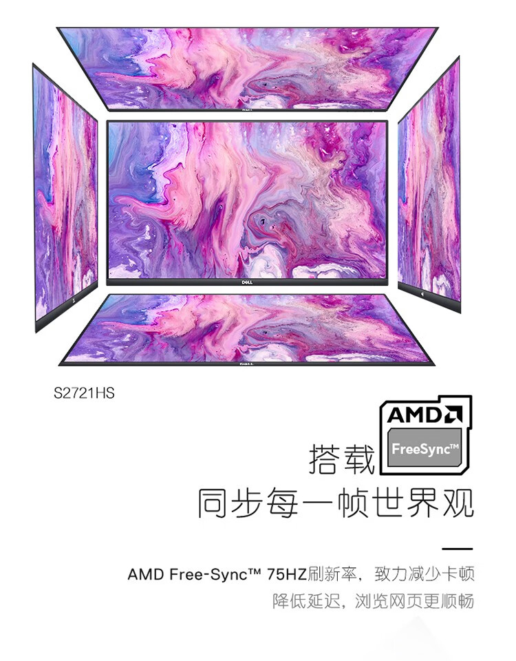 戴尔(DELL)2421 23.8英寸IPS电脑显示器FreeSync可壁挂1080高清 广视角预定 S2421HS HDMI/DP接口 可调节支架 官方标配:低蓝光无闪屏 72%色域 自营